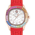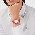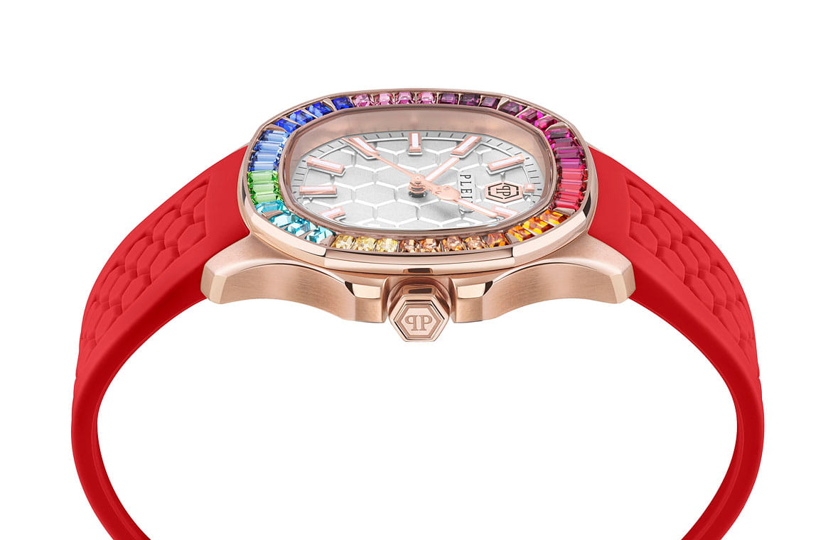 Philipp Plein THE $PECTRE LADY PWTAA1024 - дерзкое заявление любви к роскоши и бунтарскому стилю. Диаметр корпуса из прочной нержавеющей стали с PVD-покрытиемPVDУльтратонкое покрытие наносится в технике вакуумного напыления, сочетает в себе нитрид титана особой прочности со слоем золота или оксида хрома. Несёт в себе декоративную или защитную функцию. равен 38 мм. Силиконовый ремешок на стандартной застёжке обеспечивает надёжную фиксацию и комфортное ношение. Минеральное стеклоМинеральное стеклоМинеральное стекло представляет собой искусственно выращенный минерал кварца. Такое стекло отличается особой устойчивостью к повреждениям и царапинам. Уступает по некоторым качествам сапфировому стеклу. защищает циферблат от царапин. Люминесцентное покрытиеЛюминесцентное покрытиеПозволяет считывать показания времени в темноте. Производители наносят на стрелки, часовые индексы, безель или поверхность циферблата светонакопительный состав, дающий холодное свечение. стрелок и меток позволит следить за временем даже в полной темноте. БезельБезельВнешний ободок, закрепляющий стекло. В спортивных часах так называется поворотное кольцо с делениями на циферблате, выполняет роль таймера – замеряет отрезки времени на шкале. Неподвижный безель – элемент декора. Однонаправленно вращающийся безель на дайверских часах позволяет фиксировать моменты погружения и выныривания на поверхность. инкрустирован кристаллами Preciosa. Влагозащита: 50 метров, позволит защитить корпус от случайных брызг или капель дождя. Идеальный аксессуар для тех, кто ценит индивидуальность и не боится выделяться из толпы.