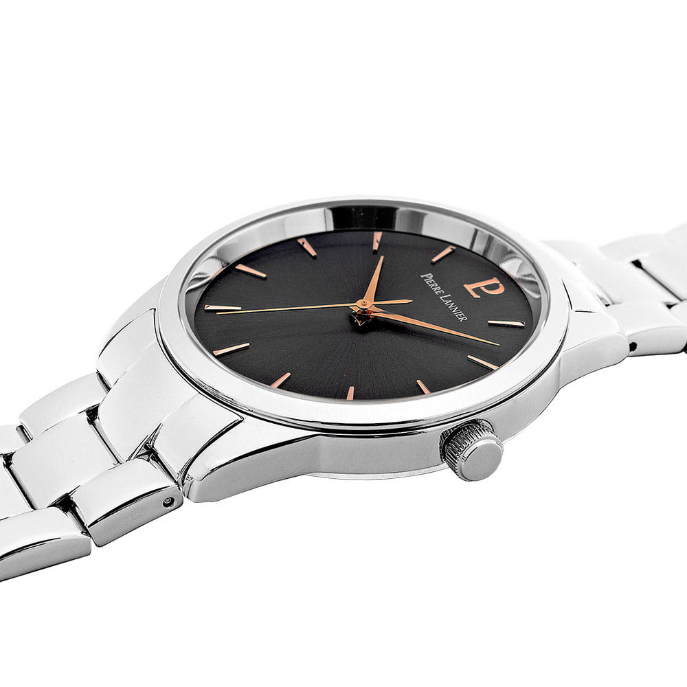 Женские кварцевые часы Pierre Lannier Roxane 066M631. Центральные часовая,минутная и секундная стрелки. Круглый корпус выполнен из полированной нержавеющей стали. Стальной браслет на раскладная застёжкаРаскладная застёжкаТакой тип застёжки используется только на браслетах из металла. Она никогда не раскрывается полностью, происходит разделение на 2 и более частей. Раскладывающая застёжка снизит вероятность потери часов к минимуму.. Фасетчатое минеральное стеклоМинеральное стеклоМинеральное стекло представляет собой искусственно выращенный минерал кварца. Такое стекло отличается особой устойчивостью к повреждениям и царапинам. Уступает по некоторым качествам сапфировому стеклу., устойчивое к мелким механическим повреждениям. Водостойкость:30 метров, позволит защитить корпус от случайных брызг или капель дождя.