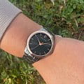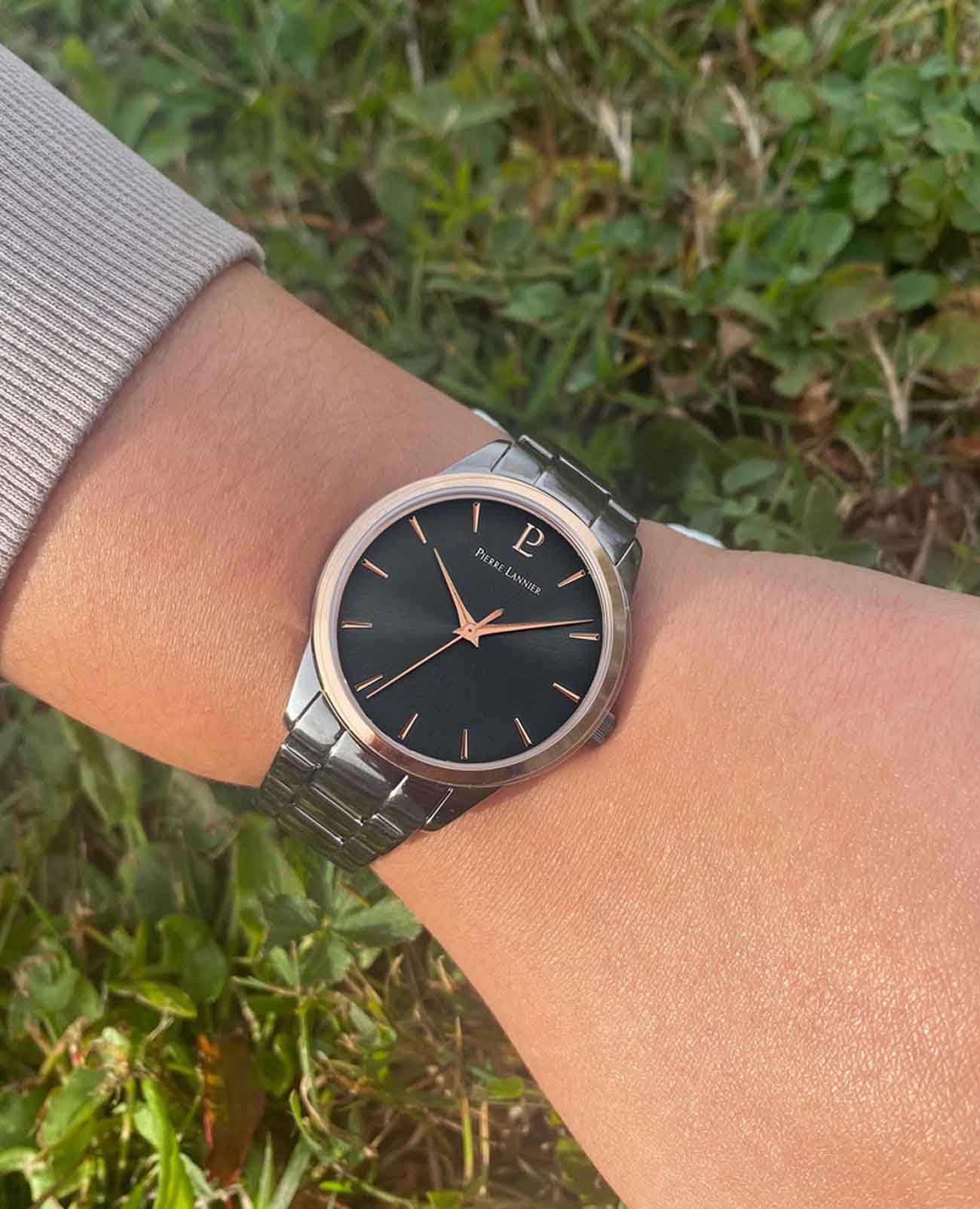 Женские часы Pierre Lannier Roxane 068J739, кварцевый механизм с высокой точностью. Минеральное стеклоМинеральное стеклоМинеральное стекло представляет собой искусственно выращенный минерал кварца. Такое стекло отличается особой устойчивостью к повреждениям и царапинам. Уступает по некоторым качествам сапфировому стеклу., устойчивое к мелким механическим повреждениям. Круглый корпус выполнен из полированной нержавеющей стали с IP-покрытиемIP-покрытиеМетод ионного напыления. Демонстрирует повышенную устойчивость к истиранию, окислению и химическим веществам. Под воздействием высокого давления и температуры около 1500°C молекулы металла надёжно соединяются с частицами корпуса часов.. БезельБезельВнешний ободок, закрепляющий стекло. В спортивных часах так называется поворотное кольцо с делениями на циферблате, выполняет роль таймера – замеряет отрезки времени на шкале. Неподвижный безель – элемент декора. Однонаправленно вращающийся безель на дайверских часах позволяет фиксировать моменты погружения и выныривания на поверхность. с IP-покрытиемIP-покрытиеМетод ионного напыления. Демонстрирует повышенную устойчивость к истиранию, окислению и химическим веществам. Под воздействием высокого давления и температуры около 1500°C молекулы металла надёжно соединяются с частицами корпуса часов.. Центральные часовая, минутная и секундная стрелки. Класс водозащиты: 30 метров, позволит защитить корпус от случайных брызг или капель дождя. Стальной браслет с IP-покрытиемIP-покрытиеМетод ионного напыления. Демонстрирует повышенную устойчивость к истиранию, окислению и химическим веществам. Под воздействием высокого давления и температуры около 1500°C молекулы металла надёжно соединяются с частицами корпуса часов. на раскладной застёжкеРаскладная застёжкаТакой тип застёжки используется только на браслетах из металла. Она никогда не раскрывается полностью, происходит разделение на 2 и более частей. Раскладывающая застёжка снизит вероятность потери часов к минимуму..