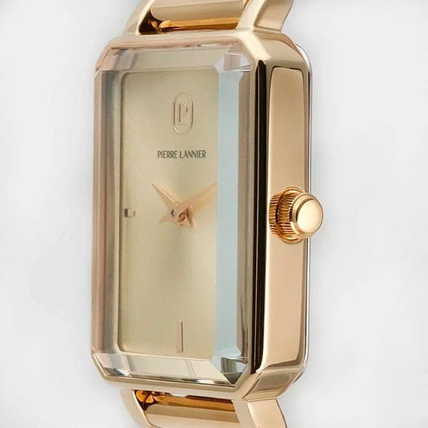 Женские кварцевые часы Pierre Lannier — это элегантный аксессуар с французским дизайном. Корпус прямоугольной формы размером 21 мм и толщиной 7,8 мм выполнен из нержавеющей стали с IP-покрытиемIP-покрытиеМетод ионного напыления. Демонстрирует повышенную устойчивость к истиранию, окислению и химическим веществам. Под воздействием высокого давления и температуры около 1500°C молекулы металла надёжно соединяются с частицами корпуса часов. цвета жёлтого золота. Циферблат золотистого цвета оформлен стрелками. Циферблат защищён минеральным стекломМинеральное стеклоМинеральное стекло представляет собой искусственно выращенный минерал кварца. Такое стекло отличается особой устойчивостью к повреждениям и царапинам. Уступает по некоторым качествам сапфировому стеклу., устойчивым к мелким механическим повреждениям. Часы оснащены стальным браслетом миланского плетения с IP-покрытиемIP-покрытиеМетод ионного напыления. Демонстрирует повышенную устойчивость к истиранию, окислению и химическим веществам. Под воздействием высокого давления и температуры около 1500°C молекулы металла надёжно соединяются с частицами корпуса часов. на раскладной застёжкеРаскладная застёжкаТакой тип застёжки используется только на браслетах из металла. Она никогда не раскрывается полностью, происходит разделение на 2 и более частей. Раскладывающая застёжка снизит вероятность потери часов к минимуму.. В комплект входит дополнительный кожаный ремешок. Водонепроницаемость 30 м позволяет использовать часы в повседневных условиях. Идеальный выбор для тех, кто ценит французский стиль и универсальный дизайн.