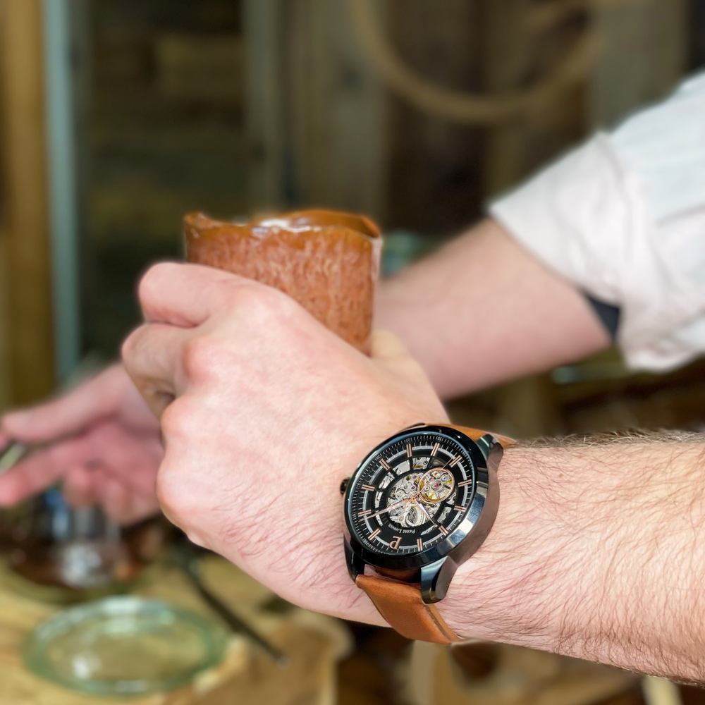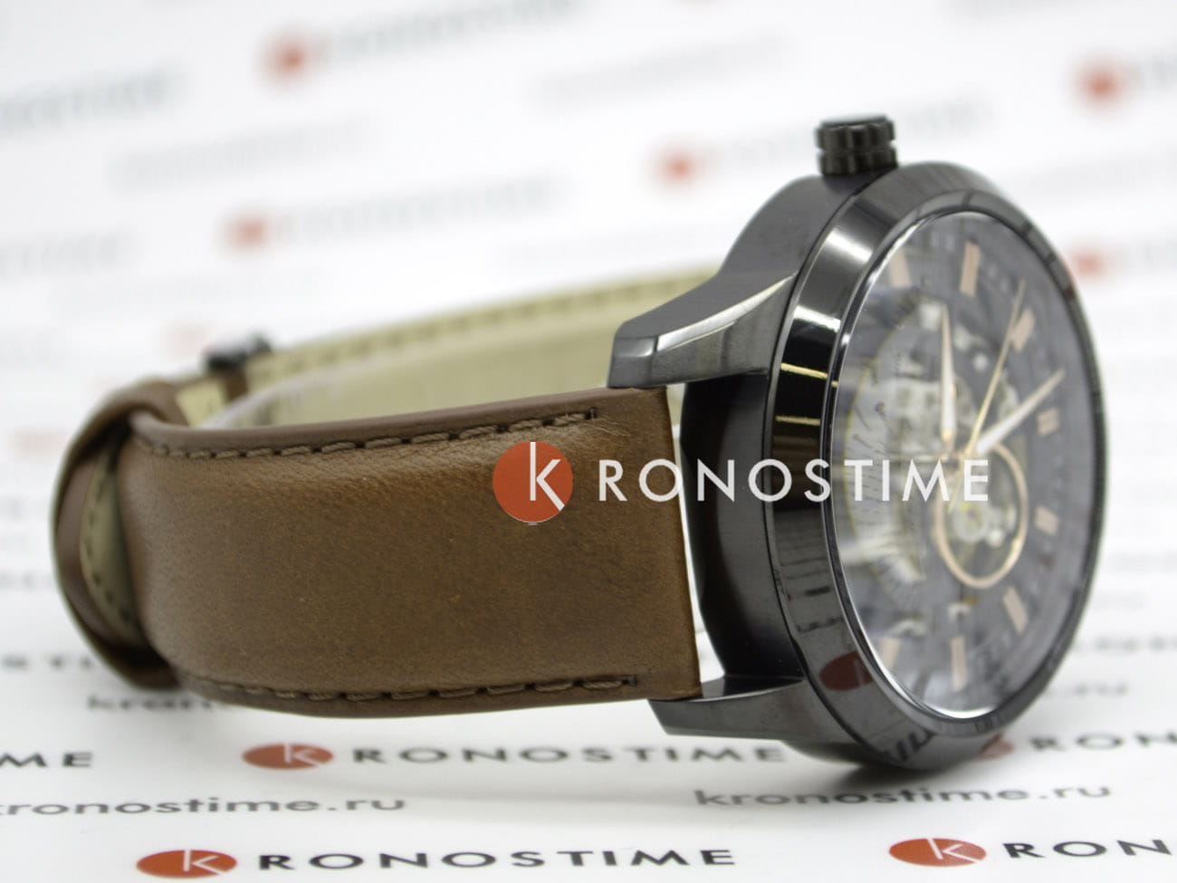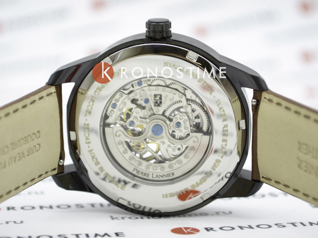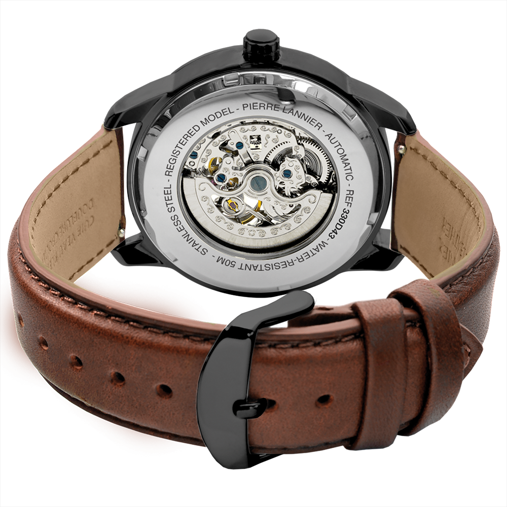 Мужские механические часы с автоподзаводом Pierre Lannier Automatic 330D434. Минеральное стеклоМинеральное стеклоМинеральное стекло представляет собой искусственно выращенный минерал кварца. Такое стекло отличается особой устойчивостью к повреждениям и царапинам. Уступает по некоторым качествам сапфировому стеклу. устойчивое к мелким механическим повреждениям. Центральные часовая, минутная и секундная стрелки. Корпус выполнен из нержавеющей стали с IP-покрытиемIP-покрытиеМетод ионного напыления. Демонстрирует повышенную устойчивость к истиранию, окислению и химическим веществам. Под воздействием высокого давления и температуры около 1500°C молекулы металла надёжно соединяются с частицами корпуса часов.. Водостойкость: 50 метров, позволит защитить корпус от случайных брызг или капель дождя. Кожаный ремешок на стандартной застёжке. Стрелки с люминесцентным покрытиемЛюминесцентное покрытиеПозволяет считывать показания времени в темноте. Производители наносят на стрелки, часовые индексы, безель или поверхность циферблата светонакопительный состав, дающий холодное свечение.. Черный скелетонизированный циферблат.
