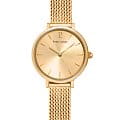 Женские кварцевые часы Pierre Lannier Nova 355D548. Центральные часовая и минутная стрелки. Золотистый циферблат. Круглый корпус выполнен из полированной нержавеющей стали с IP-покрытиемIP-покрытиеМетод ионного напыления. Демонстрирует повышенную устойчивость к истиранию, окислению и химическим веществам. Под воздействием высокого давления и температуры около 1500°C молекулы металла надёжно соединяются с частицами корпуса часов.. Стальной браслет выполнен в технике миланского плетения, раскладная застёжкаРаскладная застёжкаТакой тип застёжки используется только на браслетах из металла. Она никогда не раскрывается полностью, происходит разделение на 2 и более частей. Раскладывающая застёжка снизит вероятность потери часов к минимуму.. Прочное минеральное стеклоМинеральное стеклоМинеральное стекло представляет собой искусственно выращенный минерал кварца. Такое стекло отличается особой устойчивостью к повреждениям и царапинам. Уступает по некоторым качествам сапфировому стеклу., устойчивое к мелким механическим повреждениям. Водостойкость: 30 метров, позволит защитить корпус от случайных брызг или капель дождя.