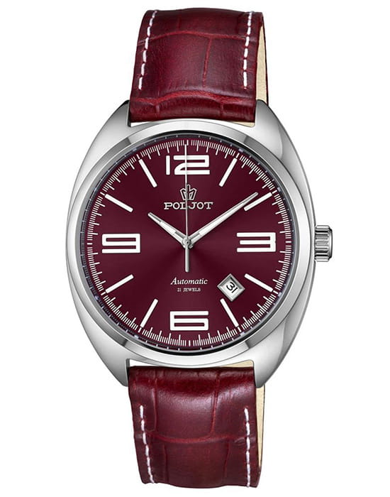 Poljot 8215.241269 — элегантные механические часы с автоподзаводом, сочетающем силу и изысканность. Корпус из нержавеющей стали подчеркивает надёжность и лаконичность дизайна, а глубокий циферблат с серебристыми стрелками и крупными арабскими цифрами придаёт модели благородный акцент. Проверенный японский механизм Miyota 8215 обеспечивает точность хода и долговечность, а плавное движение секундной стрелки подчёркивает качество сборки. Метки и стрелки с люминесцентным покрытиемЛюминесцентное покрытиеПозволяет считывать показания времени в темноте. Производители наносят на стрелки, часовые индексы, безель или поверхность циферблата светонакопительный состав, дающий холодное свечение. обеспечивают отличную читаемость при любом освещении, а окно даты добавляет практичности. Прочное минеральное стеклоМинеральное стеклоМинеральное стекло представляет собой искусственно выращенный минерал кварца. Такое стекло отличается особой устойчивостью к повреждениям и царапинам. Уступает по некоторым качествам сапфировому стеклу. защищает циферблат от царапин, а ремешок из натуральной кожи в тон циферблату завершает утончённый облик модели. Poljot — гармония классики и современной механики, созданная для тех, кто ценит традиции и индивидуальность в каждой детали. В комплекте дополнительный ремешок с напульсником.