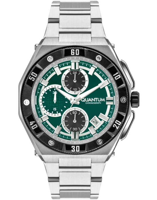 Мужские наручные часы-хронографХронографФункция позволяет измерять отрезки времени с особой точностью: часы, минуты, секунды. Верным признаком хронографа является наличие на циферблате 3 дополнительных окошек-счётчиков. Quantum HNG1011.370, кварцевый механизм с высокой точностью. Класс водозащиты: 100 метров, позволит плавать, нырять и заниматься другими водными видами спорта. Корпус часов изготовлен из нержавеющей стали. Стрелки с люминесцентным покрытиемЛюминесцентное покрытиеПозволяет считывать показания времени в темноте. Производители наносят на стрелки, часовые индексы, безель или поверхность циферблата светонакопительный состав, дающий холодное свечение.. Стальной браслет на раскладной застёжкеРаскладная застёжкаТакой тип застёжки используется только на браслетах из металла. Она никогда не раскрывается полностью, происходит разделение на 2 и более частей. Раскладывающая застёжка снизит вероятность потери часов к минимуму..