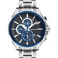 Мужские кварцевые часы — это стильный и надёжный аксессуар, выполненный в круглой форме с корпусом диаметром 46 мм. Модель изготовлена из нержавеющей стали с серебристым покрытием, что придаёт ей благородный внешний вид и устойчивость к царапинам. Защиту циферблата обеспечивает минеральное стеклоМинеральное стеклоМинеральное стекло представляет собой искусственно выращенный минерал кварца. Такое стекло отличается особой устойчивостью к повреждениям и царапинам. Уступает по некоторым качествам сапфировому стеклу., устойчивое к повседневным нагрузкам. Часы оснащены функцией Dual Time, позволяющей отслеживать два часовых пояса, а также хронографом и суточником, что делает их удобными для активного образа жизни. Циферблат чёрного цвета дополнен штриховыми метками и имеет антибликовое покрытие, обеспечивающее хорошую читаемость при любом освещении. Браслет шириной 22 мм изготовлен из стали, а его раскладывающаяся застёжка обеспечивает комфорт и надёжную фиксацию на запястье. Водонепроницаемость позволяет использовать часы при плавании и других водных активностях без глубокого погружения. Часы имеют гарантию 1 год и разработаны в Турции, что подтверждает их качество и надёжность. Эти часы станут универсальным аксессуаром для тех, кто ценит сочетание стиля, функциональности и надёжности — идеальный выбор для повседневной носки и деловых встреч.