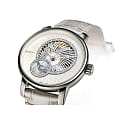 Дизайн модели является действительно роскошным - светлый циферблат дополнен двумя окружностями, декорированными сияющими драгоценными камнями. Перламутровое окошко украшено 32 бриллиантами в 0,113 карат, а скелетонизированное отверстие, сквозь которое просматривается движение деталей механизма, инкрустировано 39 бриллиантами в 0,035 карат. Часы оснащены автоматическим калибром ETA C07.631 с увеличенным резервом хода до 80 часов. Сапфировое стекло с антибликовой обработкой. Корпус из плазменной керамикиВысокотехнологичная плазменная керамикаИнновационный материал, технология запатентована. Выплавление керамики осуществляется в печи при 20 000 °C, белоснежный материал под воздействием ультравысокой температуры приобретает уникальный блеск, присущий металлам.. Прозрачная задняя крышка. Ремешок из натуральной кожи с системой быстрой установки. Водостойкость 50 метров. Диаметр корпуса: 35 мм.