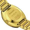 Женские механические часы с автоподзаводом Rado из коллекции Diastar Original — это элегантный аксессуар с классическим дизайном. Корпус овальной формы, диаметром 30 мм и толщиной 11 мм, выполнен из CeramosCeramosМатериал являет собой инновационное сочетание высокотехнологичной керамики и сплава металла. Он объединяет керамическую устойчивость к царапинам и металлический роскошный блеск. с PVD-покрытиемPVDУльтратонкое покрытие наносится в технике вакуумного напыления, сочетает в себе нитрид титана особой прочности со слоем золота или оксида хрома. Несёт в себе декоративную или защитную функцию. золотого цвета. Неподвижный безельБезельВнешний ободок, закрепляющий стекло. В спортивных часах так называется поворотное кольцо с делениями на циферблате, выполняет роль таймера – замеряет отрезки времени на шкале. Неподвижный безель – элемент декора. Однонаправленно вращающийся безель на дайверских часах позволяет фиксировать моменты погружения и выныривания на поверхность. также изготовлен из Ceramos. Циферблат жёлтого цвета оформлен без индексов, с золотистыми стрелками. Циферблат защищён сапфировым стекломСапфировое стеклоПрочный и надёжный материал из кристалла сапфира синтетического происхождения, характеризующийся особой твёрдостью и устойчивостью к царапинам и повреждениям. с антибликовым покрытиемАнтибликовое покрытиеСлой оксида металла в 0,13-0,3 микрон, благодаря которому стекло часов не бликует и не отражает свет. Антибликовое покрытие уменьшает отражение света в 10 раз, обеспечивая отличную читаемость показателей циферблата. на внутренней стороне. Стрелки с люминесцентным покрытиемЛюминесцентное покрытиеПозволяет считывать показания времени в темноте. Производители наносят на стрелки, часовые индексы, безель или поверхность циферблата светонакопительный состав, дающий холодное свечение. Super-Luminova®, обеспечивающим хорошую читаемость в темноте. Механизм — автоматический калибр R586 с запасом хода 48 часов, частотой 28 800 полуколебаний в час и 25 камнями. Окошко даты расположено в положении 6 часов. Часы оснащены стальным браслетом с застёжкой «бабочка» с кнопкамиЗастёжка "бабочка"Такой вид застёжки дополняется предохранителями, помогающими избежать случайного раскрытия браслета. Обладают изящным исполнением. . Водонепроницаемость 100 м позволяет использовать часы для плавания. Гарантия — 5 лет на механизм, 2 года на изделие. Идеальный выбор для тех, кто ценит стиль, точность и швейцарское качество.