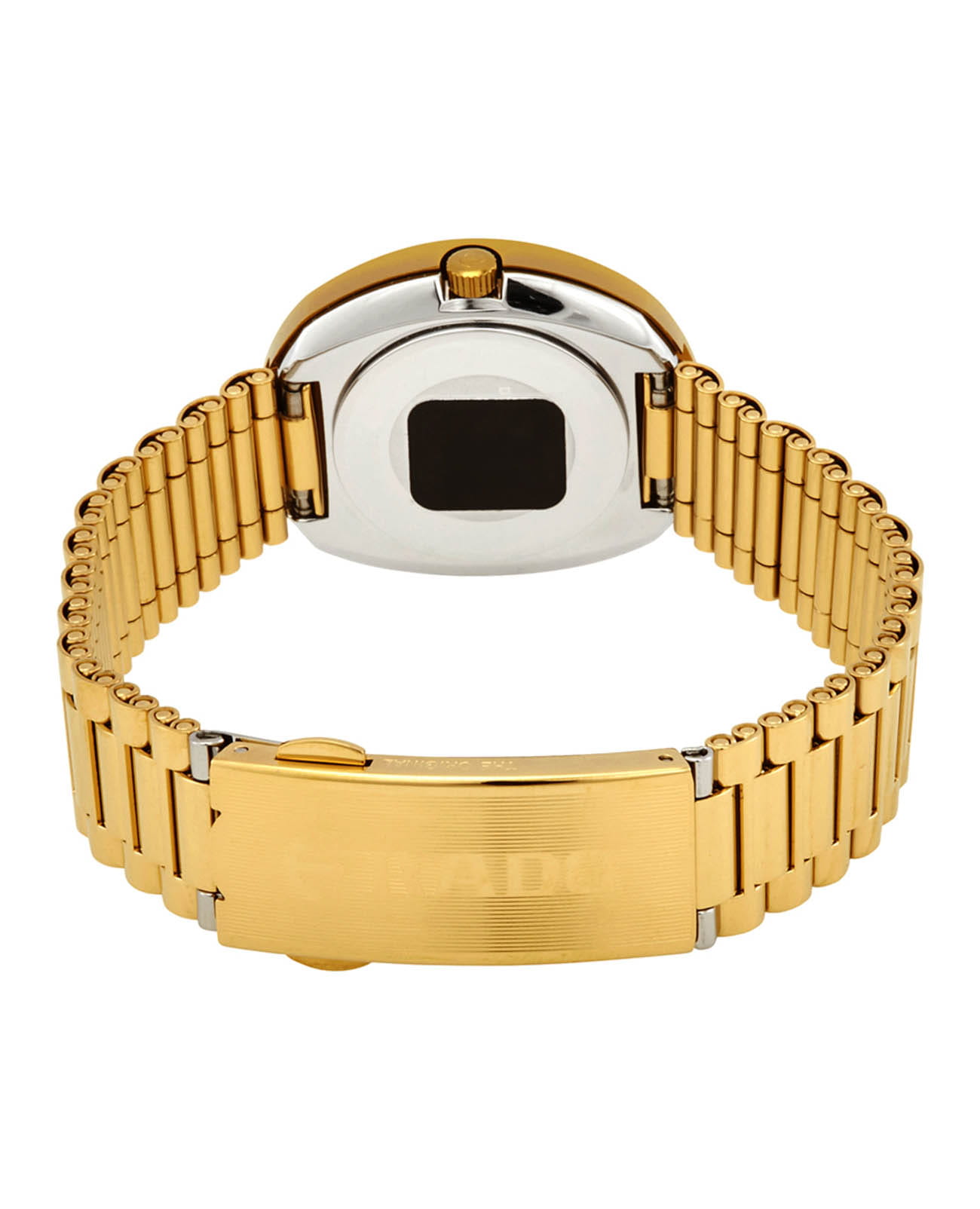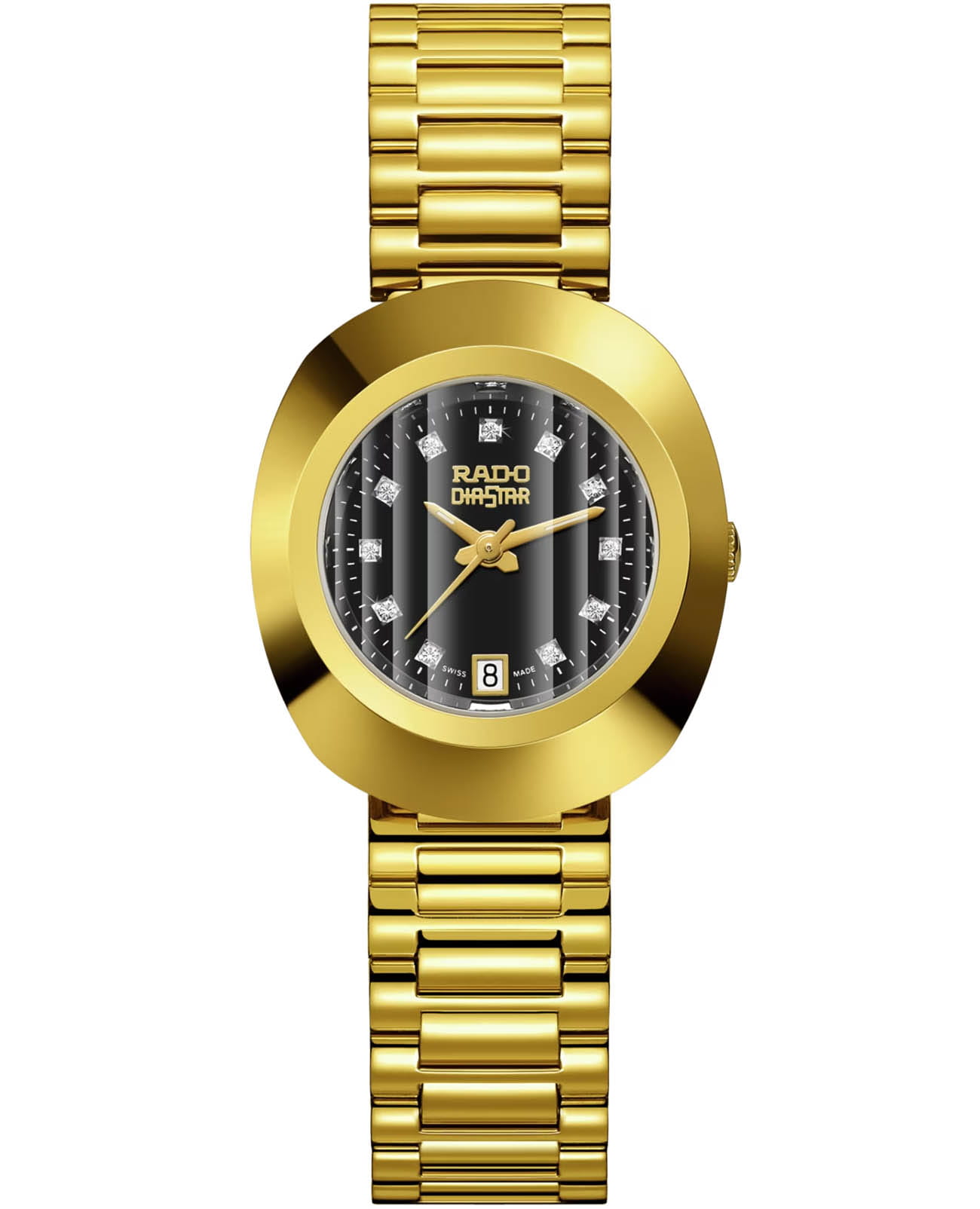 Женские часы Rado The Original R12306313 с надёжным кварцевым механизмом. Корпус и браслет часов выполнены из нержавеющей стали с PVD-покрытиемPVDУльтратонкое покрытие наносится в технике вакуумного напыления, сочетает в себе нитрид титана особой прочности со слоем золота или оксида хрома. Несёт в себе декоративную или защитную функцию.. Стрелки с люминесцентным покрытиемЛюминесцентное покрытиеПозволяет считывать показания времени в темноте. Производители наносят на стрелки, часовые индексы, безель или поверхность циферблата светонакопительный состав, дающий холодное свечение. Super-LumiNova. Стальной браслет на раскладной застёжкеРаскладная застёжкаТакой тип застёжки используется только на браслетах из металла. Она никогда не раскрывается полностью, происходит разделение на 2 и более частей. Раскладывающая застёжка снизит вероятность потери часов к минимуму.. Класс водозащиты: 30 метров, позволит защитить корпус от случайных брызг или капель дождя. Циферблат инкрустирован сапфирами. Окошко даты находятся в положении 6 часов.