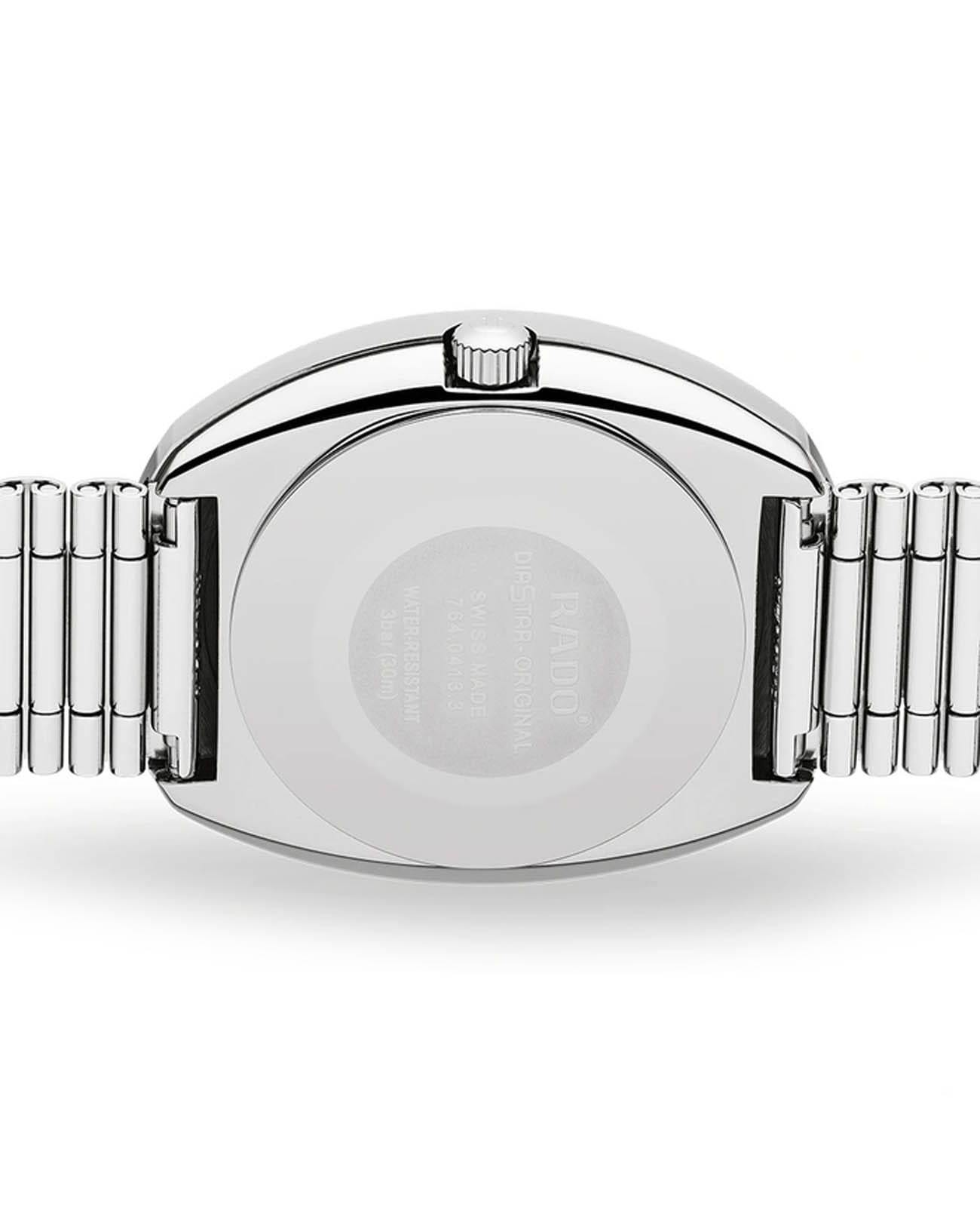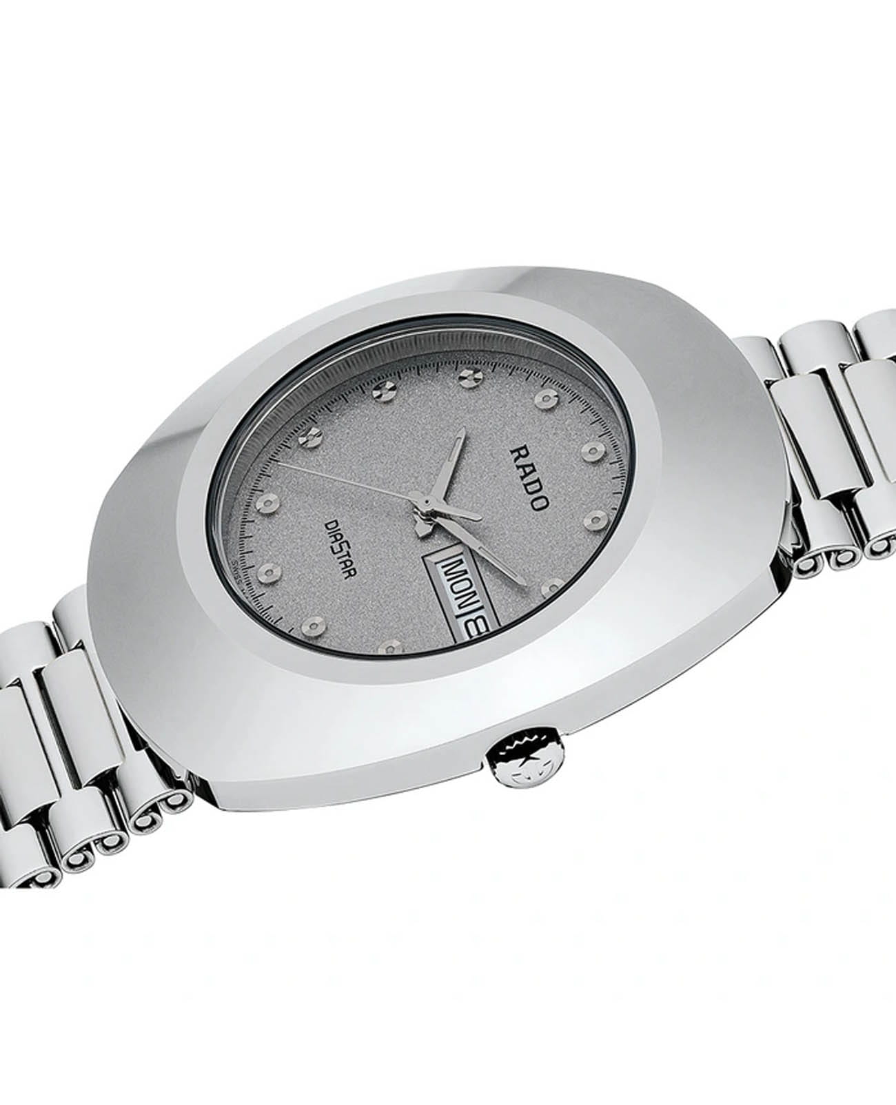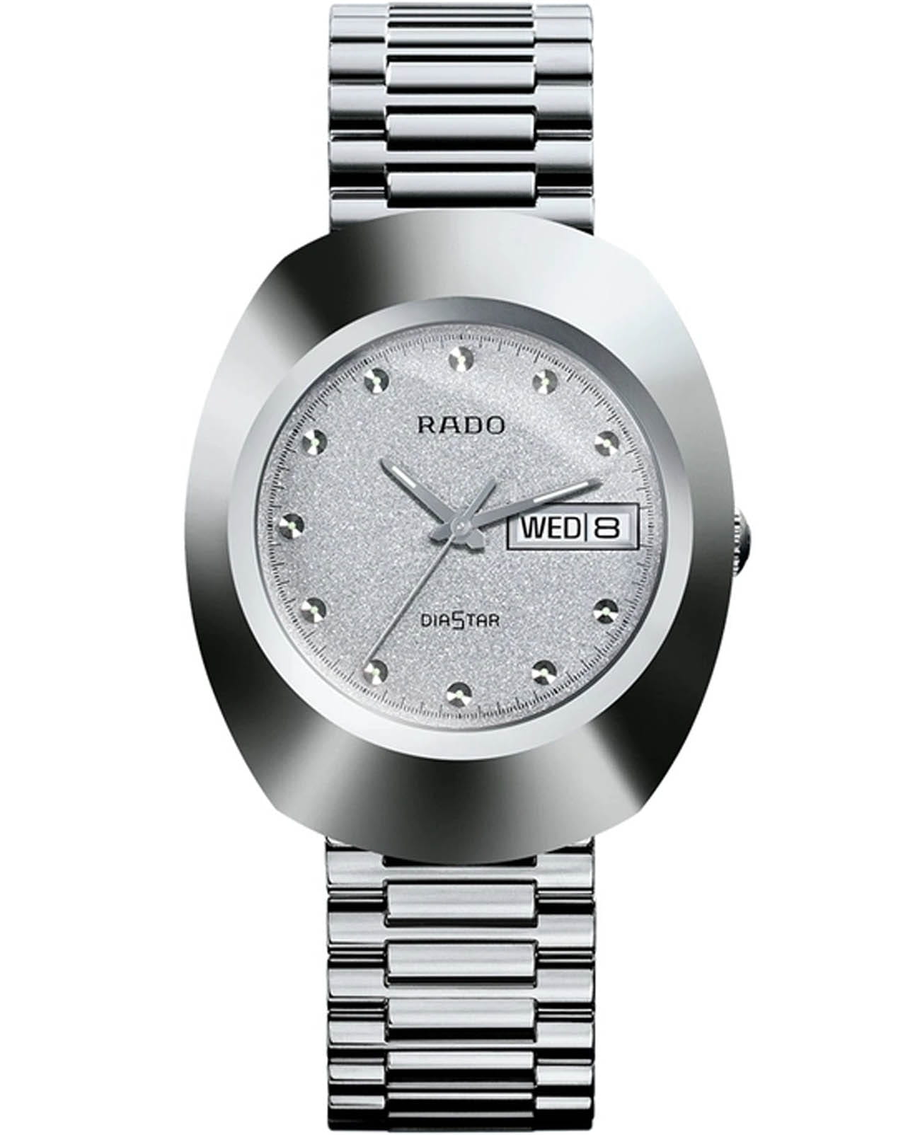 Мужские часы Rado The Original R12391103 с надёжным кварцевым механизмом. Корпус и браслет часов выполнены из нержавеющей стали. Стрелки с люминесцентным покрытиемЛюминесцентное покрытиеПозволяет считывать показания времени в темноте. Производители наносят на стрелки, часовые индексы, безель или поверхность циферблата светонакопительный состав, дающий холодное свечение. Super-LumiNova. Стальной браслет на раскладной застёжкеРаскладная застёжкаТакой тип застёжки используется только на браслетах из металла. Она никогда не раскрывается полностью, происходит разделение на 2 и более частей. Раскладывающая застёжка снизит вероятность потери часов к минимуму.. Класс водозащиты: 30 метров, позволит защитить корпус от случайных брызг или капель дождя. Циферблат инкрустирован сапфирами. Окошки дня недели и даты находятся в положении 3 часа.