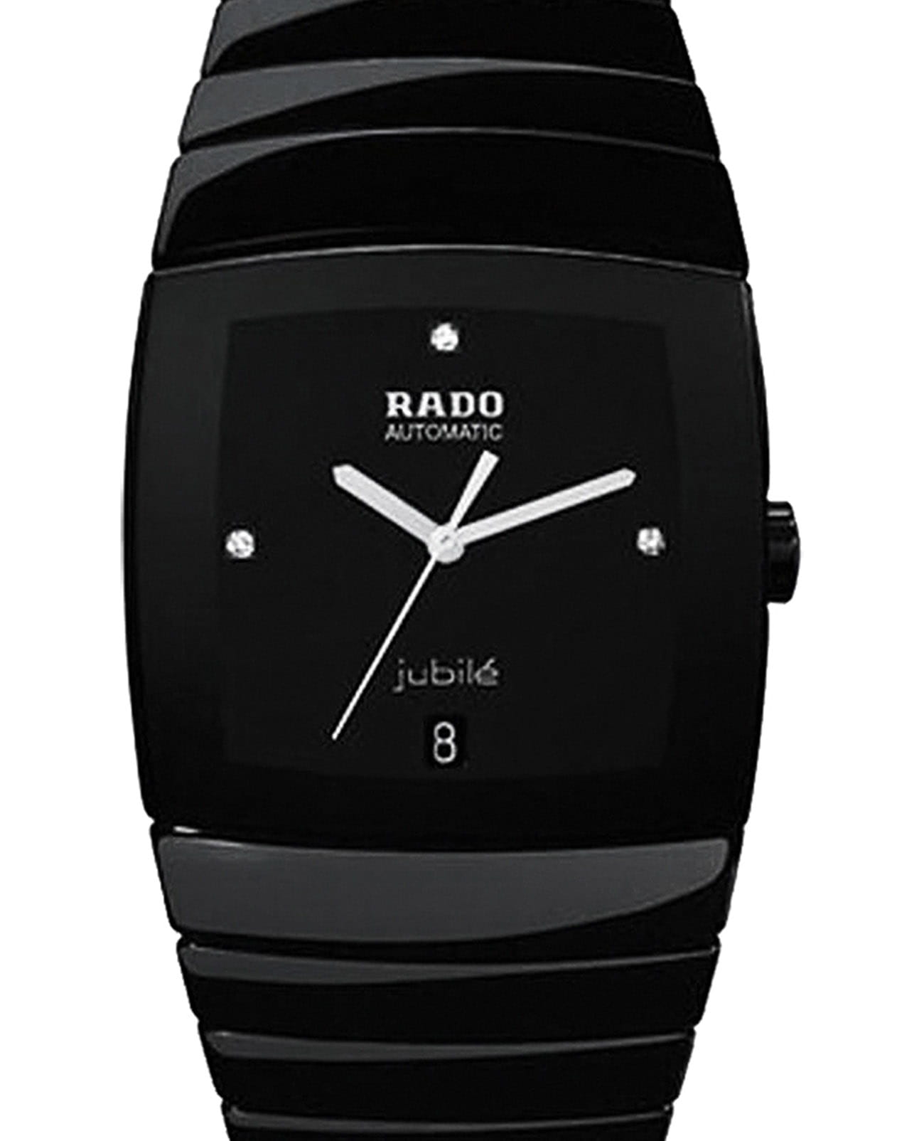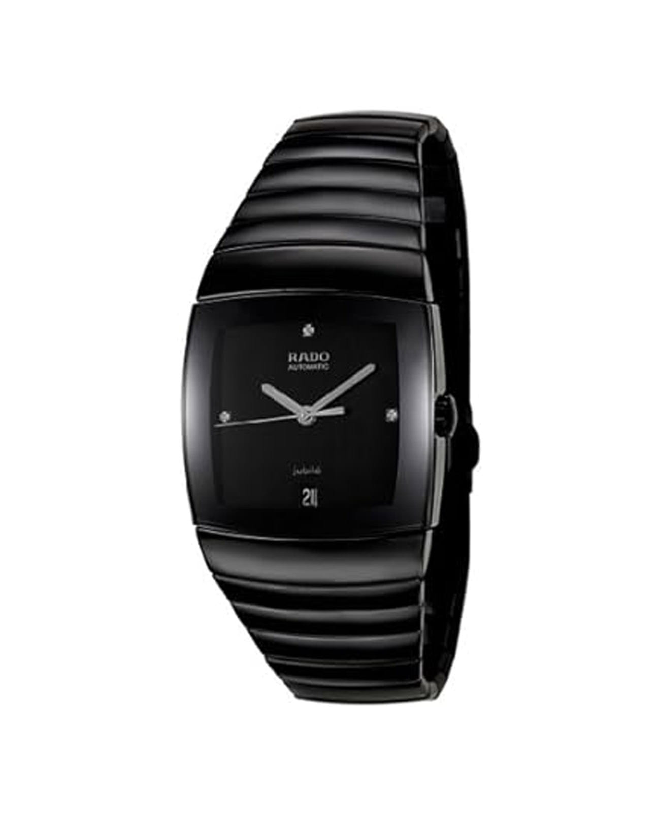 Швейцарские мужские механические швейцарские часы с автоподзаводом Rado Sintra R13663712. Сапфировое стеклоСапфировое стеклоПрочный и надёжный материал из кристалла сапфира синтетического происхождения, характеризующийся особой твёрдостью и устойчивостью к царапинам и повреждениям. устойчивое к появлению царапин, обладающее высокой прозрачностью. Корпус часов изготовлен из высокотехнологичной керамикиВысокотехнологичная керамикаИнновационный запатентованный Rado материал с гладкой или матовой поверхностью. Керамика за счёт кристаллической структуры обладает повышенной устойчивостью от возникновения царапин. Материал способен принимать температуру тела человека, обеспечивая невероятный комфорт при ношении.. Окошко даты находится в положении 6 часов. Циферблат украшен бриллиантами. Класс водозащиты: 30 метров, позволит защитить корпус от случайных брызг или капель дождя. Браслет из высокотехнологичной керамикиВысокотехнологичная керамикаИнновационный запатентованный Rado материал с гладкой или матовой поверхностью. Керамика за счёт кристаллической структуры обладает повышенной устойчивостью от возникновения царапин. Материал способен принимать температуру тела человека, обеспечивая невероятный комфорт при ношении. на раскладной застёжкеРаскладная застёжкаТакой тип застёжки используется только на браслетах из металла. Она никогда не раскрывается полностью, происходит разделение на 2 и более частей. Раскладывающая застёжка снизит вероятность потери часов к минимуму..