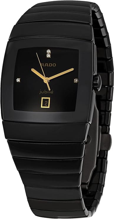 Часы Rado Sintra R13724712, произведение искусства и технологическое чудо, станут прекрасным дополнением к коллекции любого мужчины. Эти швейцарские часы оснащены кварцевым механизмом с указателем даты и тремя стрелками, заключенным в бочкообразный корпус из высокотехнологичной керамикиВысокотехнологичная керамикаИнновационный запатентованный Rado материал с гладкой или матовой поверхностью. Керамика за счёт кристаллической структуры обладает повышенной устойчивостью от возникновения царапин. Материал способен принимать температуру тела человека, обеспечивая невероятный комфорт при ношении.. Сапфировое стеклоСапфировое стеклоПрочный и надёжный материал из кристалла сапфира синтетического происхождения, характеризующийся особой твёрдостью и устойчивостью к царапинам и повреждениям. устойчивое к появлению царапин, обладающее высокой прозрачностью. Класс водозащиты: 30 метров, позволит защитить корпус от случайных брызг или капель дождя. На циферблате бриллианты - 4 шт 0.031carat. Браслет из керамики на застёжке-бабочке с кнопкамиЗастёжка "бабочка"Такой вид застёжки дополняется предохранителями, помогающими избежать случайного раскрытия браслета. Обладают изящным исполнением. .