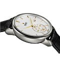 Наручные часы будут гармонично сочетаться с повседневным, деловым, вечерним образом, чёрный ремешок из натуральной кожи стильно смотрится на запястье. Компактный белый циферблат дополнен выпуклым сапфировым стеклом с антибликовым покрытием. Аксессуар оснащён механизмом ETA C07.811, сохраняющим запас хода до 80 часов. Скелетонизированная задняя крышка. Надёжный корпус из цельного куска плазменной керамикиВысокотехнологичная плазменная керамикаИнновационный материал, технология запатентована. Выплавление керамики осуществляется в печи при 20 000 °C, белоснежный материал под воздействием ультравысокой температуры приобретает уникальный блеск, присущий металлам.. Сертификат COSCСертификат COSCОфициальный сертификат, подтверждающий то, что часы ходят с особо высокой точностью. Для получения документа часы подвергаются тестовым испытаниям, разработанным швейцарским институтом тестирования хронометров COSC. Допустимая норма для механических часов -4/+6 секунд в день, для кварцевых моделей +/- 0,07 секунд в день.. Отдельный секундный счётчик. Отображение числа. . Диаметр корпуса: 43 мм.
