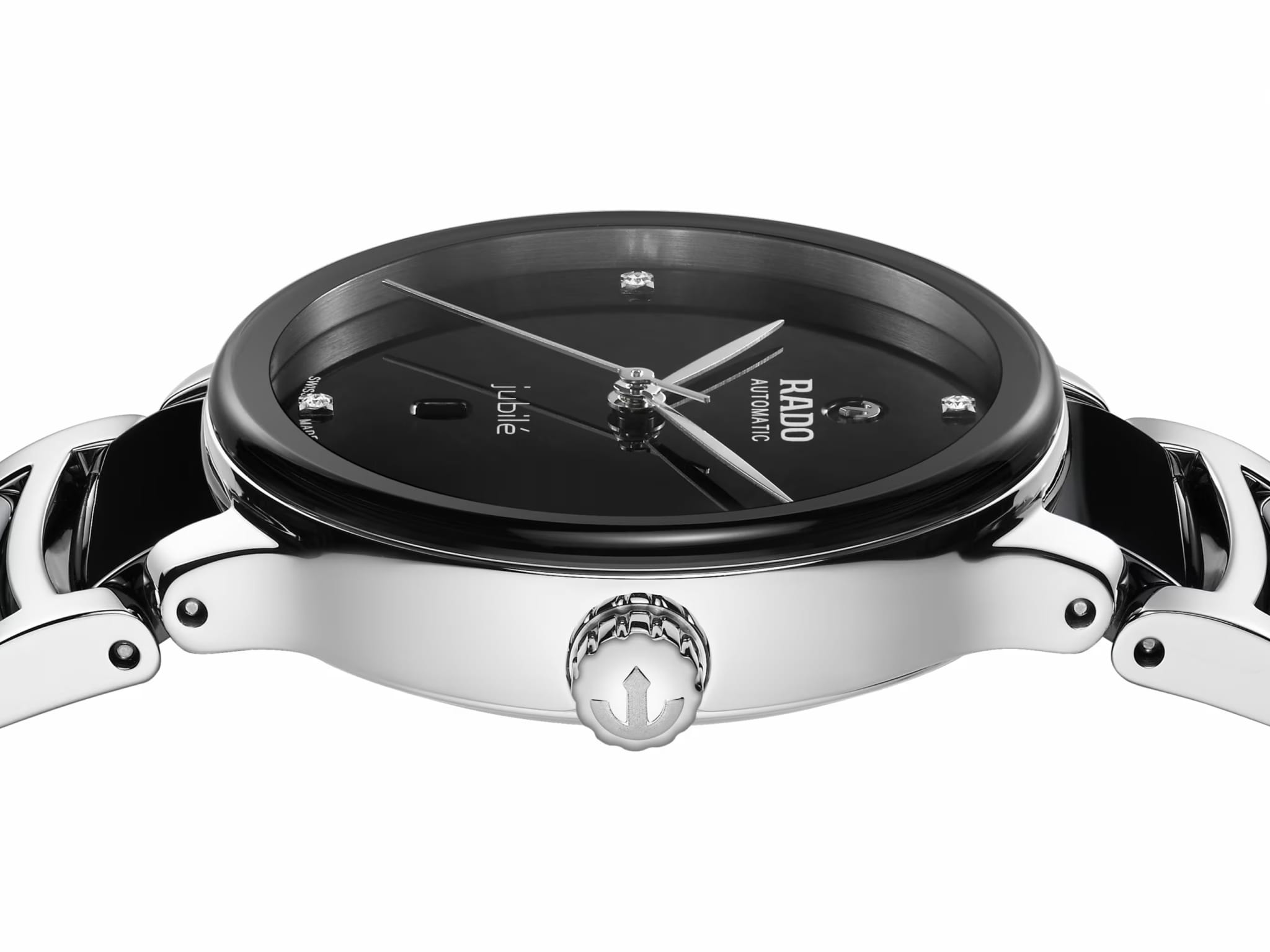 Корпус часов изготовлен из высококачественной нержавеющей стали с PVD-покрытиемPVDУльтратонкое покрытие наносится в технике вакуумного напыления, сочетает в себе нитрид титана особой прочности со слоем золота или оксида хрома. Несёт в себе декоративную или защитную функцию., что придаёт часам изысканный блеск и дополнительную защиту от износа. Браслет из стали и высокотехнологичной керамикиВысокотехнологичная керамикаИнновационный запатентованный Rado материал с гладкой или матовой поверхностью. Керамика за счёт кристаллической структуры обладает повышенной устойчивостью от возникновения царапин. Материал способен принимать температуру тела человека, обеспечивая невероятный комфорт при ношении. закреплён на удобной и надёжной раскладной застёжкеРаскладная застёжкаТакой тип застёжки используется только на браслетах из металла. Она никогда не раскрывается полностью, происходит разделение на 2 и более частей. Раскладывающая застёжка снизит вероятность потери часов к минимуму.. Сапфировое стеклоСапфировое стеклоПрочный и надёжный материал из кристалла сапфира синтетического происхождения, характеризующийся особой твёрдостью и устойчивостью к царапинам и повреждениям. устойчиво к мелким повреждениям и обеспечивает отличную читаемость циферблата в любых условиях освещения.