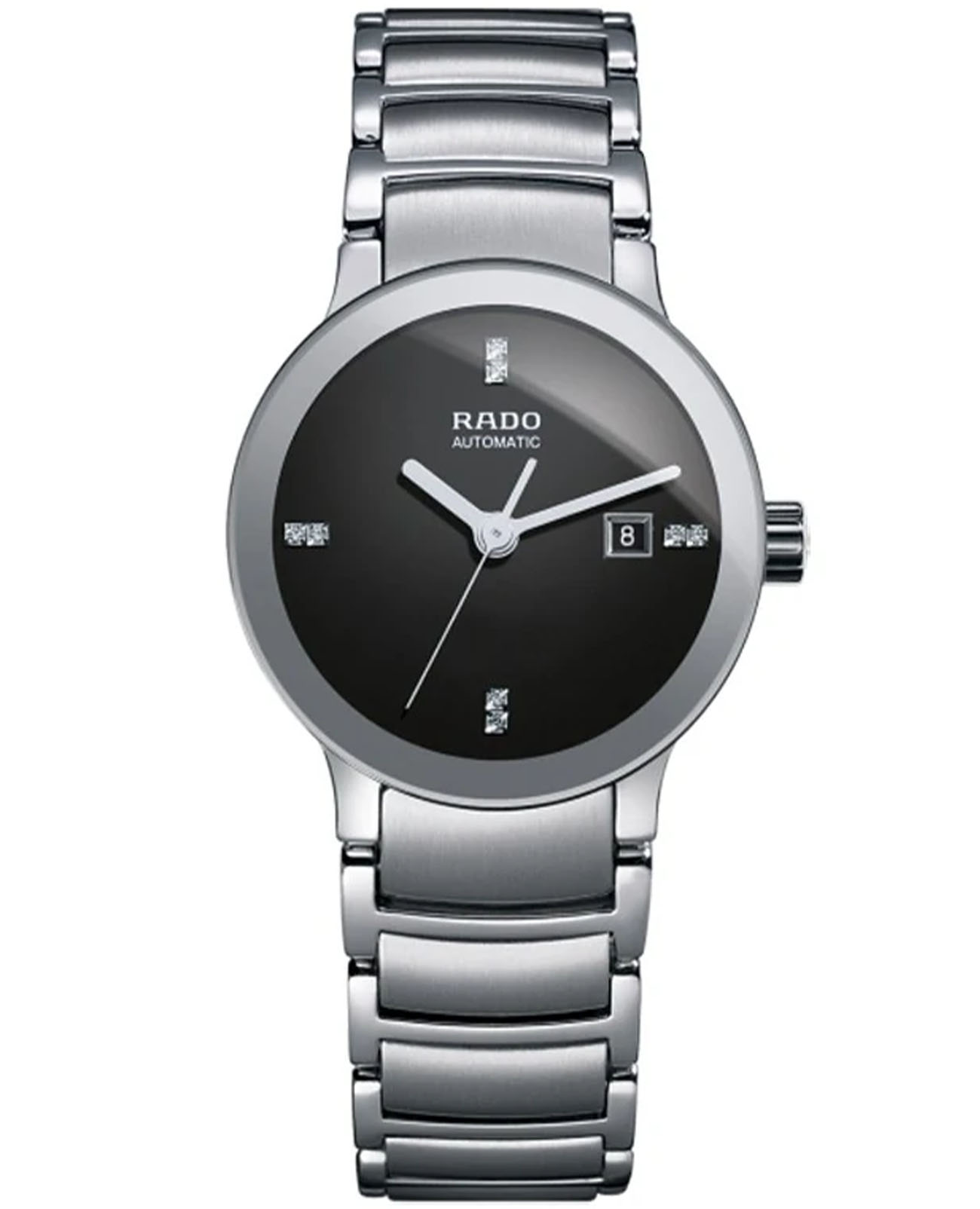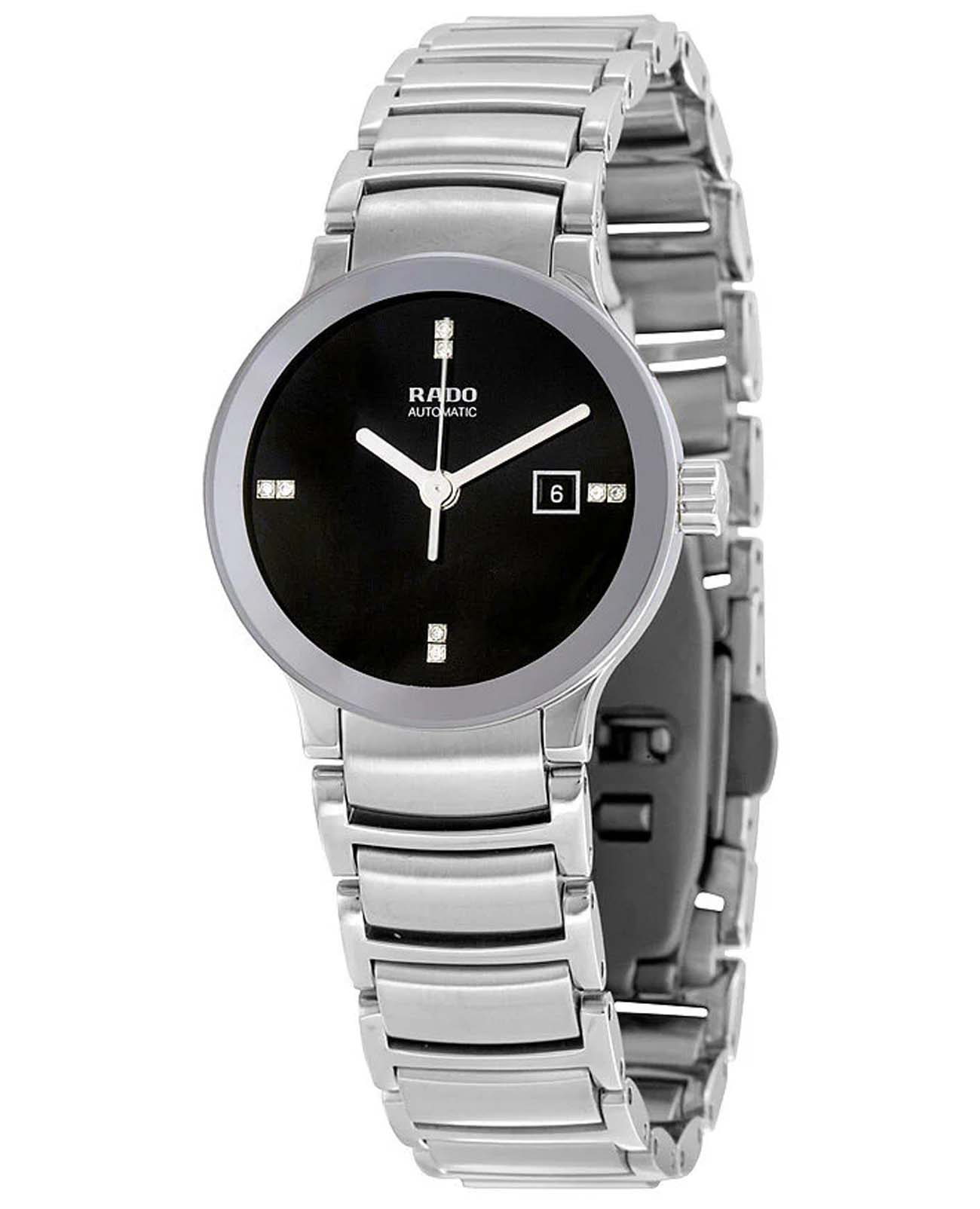 Швейцарские женские механические часы с автоподзаводом Rado Centrix Diamonds R30940703. Сапфировое стеклоСапфировое стеклоПрочный и надёжный материал из кристалла сапфира синтетического происхождения, характеризующийся особой твёрдостью и устойчивостью к царапинам и повреждениям. устойчивое к появлению царапин, обладающее высокой прозрачностью. Корпус часов изготовлен из нержавеющей стали. Циферблат украшен бриллиантами. Класс водозащиты: 30 метров, позволит защитить корпус от случайных брызг или капель дождя. Браслет нержавеющей стали на раскладной застёжкеРаскладная застёжкаТакой тип застёжки используется только на браслетах из металла. Она никогда не раскрывается полностью, происходит разделение на 2 и более частей. Раскладывающая застёжка снизит вероятность потери часов к минимуму..