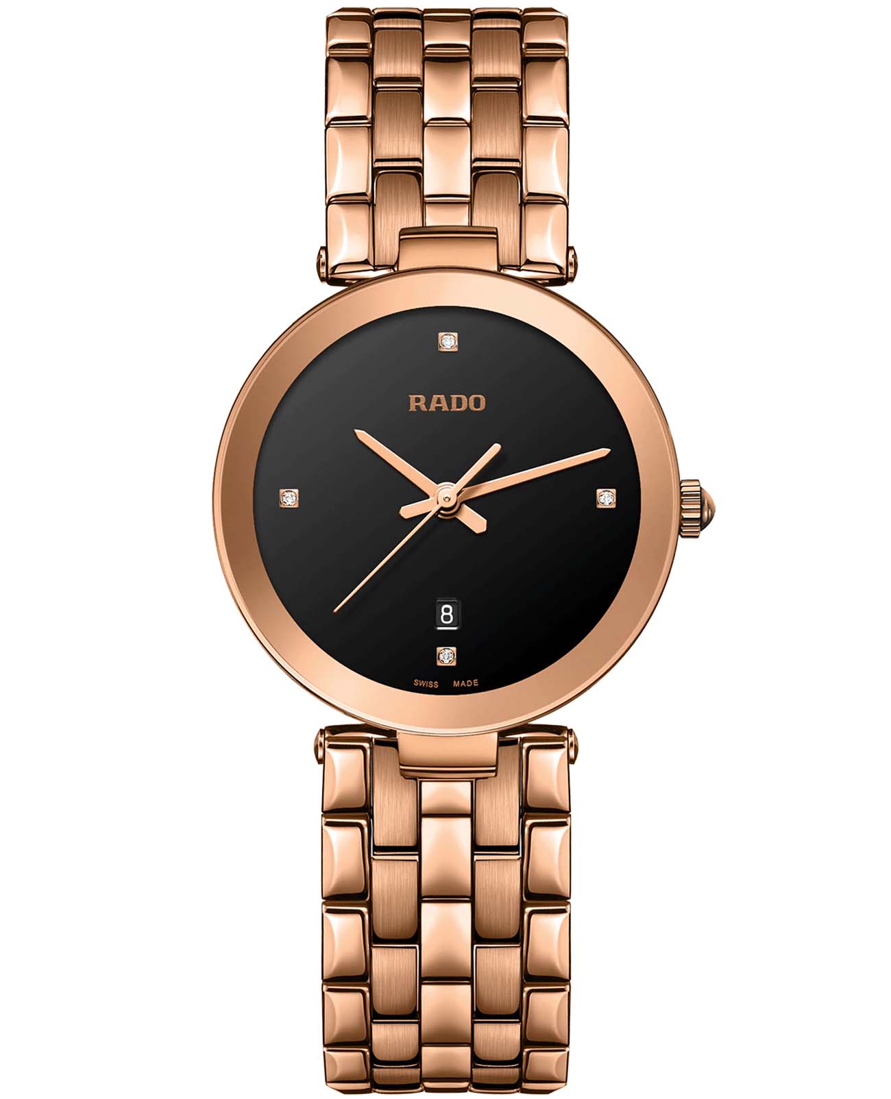 Женские швейцарские часы Rado Florence Diamonds R48893714 из коллекции Florence помогут завершить образ на деловую встречу или светское мероприятие. Премиальный аксессуар точно пройдёт испытание временем, сохраняя актуальность в любой ситуации. Минималистичный черный циферблат инкрустирован 4 роскошными бриллиантами в 0,008 карат. Корпус и браслет изготовлены из нержавеющей стали 316L с PVD-покрытиемPVDУльтратонкое покрытие наносится в технике вакуумного напыления, сочетает в себе нитрид титана особой прочности со слоем золота или оксида хрома. Несёт в себе декоративную или защитную функцию..Сапфировое стекло отличается устойчивостью к царапинам. Водостойкость 30 метров. . Отображение даты. Диаметр корпуса: 28 мм. Производство и сборка: Швейцария.