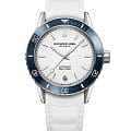 Белый циферблат украшен накладными индексами с покрытием Super-LumiNova®Люминесцентное покрытиеПозволяет считывать показания времени в темноте. Производители наносят на стрелки, часовые индексы, безель или поверхность циферблата светонакопительный состав, дающий холодное свечение., что обеспечивает отличную читаемость даже в условиях низкой освещённости. Окно даты в форме капли расположено на отметке 6 часов, добавляя удобства в использовании.