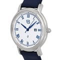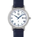 Стальной корпус круглой формы выполнен из нержавеющей стали, что придает часам прочность и долговечность. Циферблат с римскими цифрами и метками в виде штрихов надежно защищен закаленным минеральным стекломМинеральное стеклоМинеральное стекло представляет собой искусственно выращенный минерал кварца. Такое стекло отличается особой устойчивостью к повреждениям и царапинам. Уступает по некоторым качествам сапфировому стеклу., что предотвращает появление царапин и повреждений.
