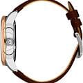 Мужские механические часы с автоподзаводом Santa Barbara Polo & Racquet Club — это демонстрация инженерного искусства и изящества. Корпус диаметром 43,8 мм и высотой 52 мм выполнен из стали. БезельБезельВнешний ободок, закрепляющий стекло. В спортивных часах так называется поворотное кольцо с делениями на циферблате, выполняет роль таймера – замеряет отрезки времени на шкале. Неподвижный безель – элемент декора. Однонаправленно вращающийся безель на дайверских часах позволяет фиксировать моменты погружения и выныривания на поверхность. с IP-покрытиемIP-покрытиеМетод ионного напыления. Демонстрирует повышенную устойчивость к истиранию, окислению и химическим веществам. Под воздействием высокого давления и температуры около 1500°C молекулы металла надёжно соединяются с частицами корпуса часов.. Циферблат белого цвета частично скелетонизирован, что позволяет наблюдать за работой механизма. Двухуровневый циферблат оформлен по технологии Sunray («солнечные лучи»), дополнен накладными метками в виде штрихов и фирменным логотипом. Стрелки с люминесцентным покрытиемЛюминесцентное покрытиеПозволяет считывать показания времени в темноте. Производители наносят на стрелки, часовые индексы, безель или поверхность циферблата светонакопительный состав, дающий холодное свечение., обеспечивающим хорошую читаемость в темноте. Циферблат защищён минеральным стекломМинеральное стеклоМинеральное стекло представляет собой искусственно выращенный минерал кварца. Такое стекло отличается особой устойчивостью к повреждениям и царапинам. Уступает по некоторым качествам сапфировому стеклу.. Прозрачная задняя крышка открывает вид на декорированный механизм. Часы оснащены кожаным ремешком с стандартной застёжкой. Водонепроницаемость 50 м позволяет использовать часы в повседневных условиях. Идеальный выбор для тех, кто ценит технологичность, стиль и качество.