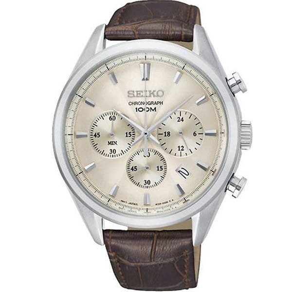 Наручные часы имеют стильный циферблат, дополненный изящным узором – всё в рамках классического стиля. ХронографХронографФункция позволяет измерять отрезки времени с особой точностью: часы, минуты, секунды. Верным признаком хронографа является наличие на циферблате 3 дополнительных окошек-счётчиков. наделён надёжным корпусом, сделанным из нержавеющей стали 316L. Материал был выбран благодаря устойчивости к царапинам и возникновению коррозии. Привлекательным решением стал ремешок из натуральной телячьей кожи с тиснением под крокодиловую кожу. Модель демонстрирует высокую точность хода ±15 секунд в месяц благодаря японскому кварцевому механизму Seiko 8T63. Выпуклое минеральное стекло Hardlex – собственная разработка бренда. Задняя крышка завинчивается, сохраняя герметичность конструкции при давлении 10 бар. Функции: секундомер, отображение текущего числа. Диаметр корпуса: 42,2 мм.