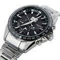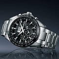 -сигнала, позволяющего настраивать максимально точное время, часовой пояс и текущую дату. Часы запасаются энергией от любого источника света благодаря технологии . Японский кварцевый калибр Seiko под номером 8X42. Браслет и корпус из нержавеющей стали 316L. Чёрный безельБезельВнешний ободок, закрепляющий стекло. В спортивных часах так называется поворотное кольцо с делениями на циферблате, выполняет роль таймера – замеряет отрезки времени на шкале. Неподвижный безель – элемент декора. Однонаправленно вращающийся безель на дайверских часах позволяет фиксировать моменты погружения и выныривания на поверхность. из керамики. Сапфировое стекло. Водостойкость до 10 бар. Люминесцентная подсветка LumiBriteЛюминесцентное покрытиеПозволяет считывать показания времени в темноте. Производители наносят на стрелки, часовые индексы, безель или поверхность циферблата светонакопительный состав, дающий холодное свечение.. Защищённая заводная головка. Мировое времяМировое время Полезное часовое усложнение, отображающее время в основных городах и известных областях по всему миру, оно связано с часовыми поясами, удобно для путешественников и бизнесменов. – 40 часовых поясов, вечный календарьВечный календарьКлассическое часовое усложнение, представляющее собой календарь, рассчитанный на несколько лет вперёд (стандартно – до 2099 года). Определяет текущую дату, день недели, месяц.. Диаметр корпуса: 45,5 мм.
