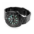 Односторонний вращающийся безельБезельВнешний ободок, закрепляющий стекло. В спортивных часах так называется поворотное кольцо с делениями на циферблате, выполняет роль таймера – замеряет отрезки времени на шкале. Неподвижный безель – элемент декора. Однонаправленно вращающийся безель на дайверских часах позволяет фиксировать моменты погружения и выныривания на поверхность. с насечками и чёткой разметкой позволяет точно отслеживать время погружения. Метки и стрелки покрыты люминесцентным покрытиемЛюминесцентное покрытиеПозволяет считывать показания времени в темноте. Производители наносят на стрелки, часовые индексы, безель или поверхность циферблата светонакопительный состав, дающий холодное свечение. LumiBrite, обеспечивая идеальную видимость даже в полной темноте.
