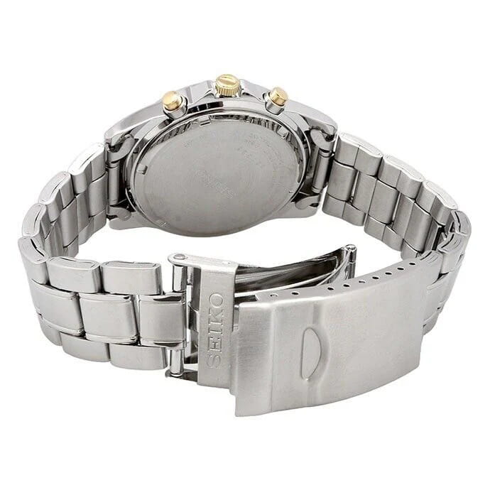 Мужские кварцевые часы Seiko SBTQ043 из коллекции Spirit — это точность, надёжность и стиль. Часы оснащены японским механизмом калибра 7T92 с функцией хронографаХронографФункция позволяет измерять отрезки времени с особой точностью: часы, минуты, секунды. Верным признаком хронографа является наличие на циферблате 3 дополнительных окошек-счётчиков., позволяющей измерять промежутки времени. Центральные часовая и минутная стрелки дополнены вынесенной секундной стрелкой на малом циферблате, окошко даты расположено в положении 3 часов. Циферблат чёрного цвета оформлен с люминесцентными метками, стрелки и метки покрыты люминесцентным покрытиемЛюминесцентное покрытиеПозволяет считывать показания времени в темноте. Производители наносят на стрелки, часовые индексы, безель или поверхность циферблата светонакопительный состав, дающий холодное свечение., что обеспечивает хорошую читаемость в темноте. Корпус круглой формы выполнен из нержавеющей стали и защищён закалённым минеральным стеклом Hardlex, устойчивым к мелким механическим повреждениям. Браслет из нержавеющей стали фиксируется на раскладной застёжкеРаскладная застёжкаТакой тип застёжки используется только на браслетах из металла. Она никогда не раскрывается полностью, происходит разделение на 2 и более частей. Раскладывающая застёжка снизит вероятность потери часов к минимуму.. Водонепроницаемость 100 м позволяет использовать часы для плавания и повседневного ношения. Модель сочетает в себе японское качество и лаконичный дизайн.