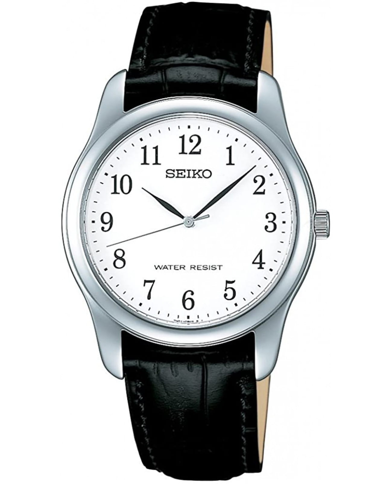 Мужские кварцевые часы Seiko из коллекции Spirit — это надёжный и универсальный аксессуар. Корпус диаметром 35 мм выполнен из нержавеющей стали. Циферблат белого цвета оформлен индексами и стрелками, включая центральную секундную стрелку. Циферблат защищён прочным закалённым минеральным стеклом Hardlex минеральным стекломМинеральное стеклоМинеральное стекло представляет собой искусственно выращенный минерал кварца. Такое стекло отличается особой устойчивостью к повреждениям и царапинам. Уступает по некоторым качествам сапфировому стеклу.. Механизм — калибр 7N01 с высокой точностью хода (±10–15 сек. в месяц). Часы оснащены чёрным кожаным ремешком на классической пряжке. Водонепроницаемость 30 м позволяет использовать часы в повседневных условиях. Идеальный выбор для тех, кто ценит японское качество и классический дизайн.