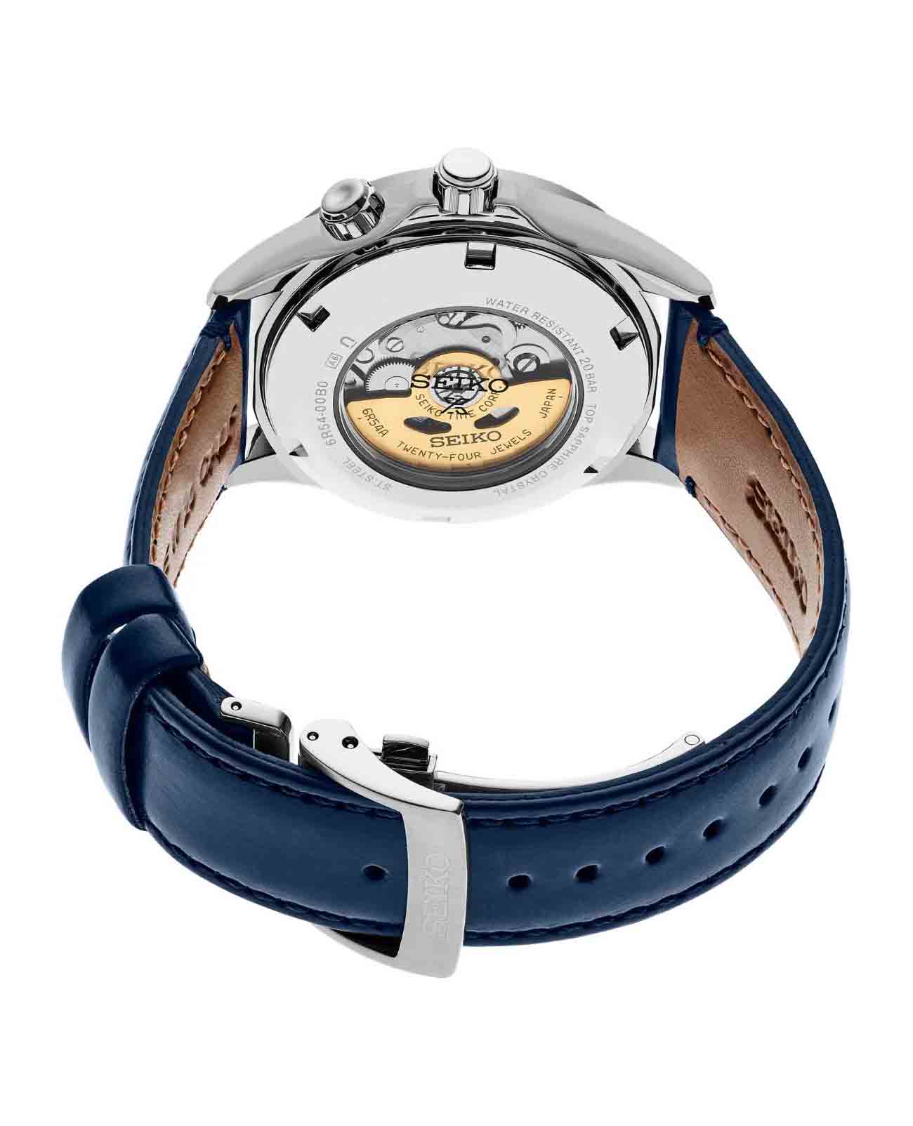 Завинчивающаяся заводная головка с защитой и завинчивающаяся прозрачная задняя крышка добавляют часам дополнительную надежность и позволяют наблюдать за работой механизма. Класс водонепроницаемости 200 метров делает эти часы подходящими для плавания, ныряния и других водных активностей, выдерживая давление воды на значительной глубине.