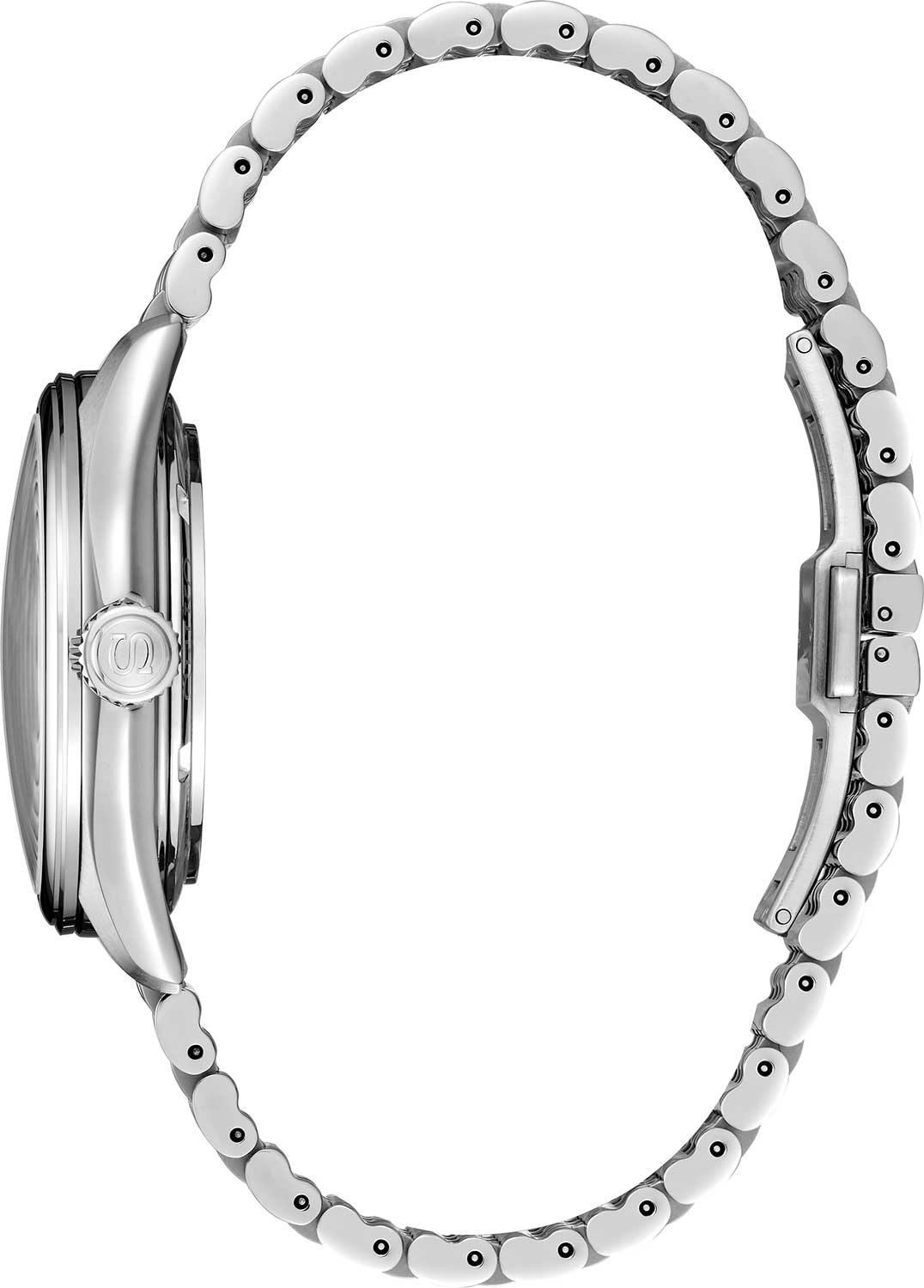 Мужские механические часы Seiko Presage Classic SPB463 — это отражение японского мастерства и внимания к деталям. Серия вдохновлена цветами, текстурами и материалами традиционных японских ремёсел, что нашло своё отражение в изысканном дизайне и высокой функциональности модели. Часы оснащены калибром 6R55 — надёжным механизмом с автоподзаводом и возможностью ручной подзаводки. Механизм работает на частоте 21 600 полуколебаний в час, имеет 24 драгоценных камня и обеспечивает запас хода до 72 часов. Также реализована функция стоп-секунды для точной установки времени и защита от магнитных полей до 4800 А/м. Циферблат бежевого цвета выполнен в стиле «широ-иро» — в оттенке неотбелённого шелка. Его поверхность украшена тонкой текстурой, напоминающей благородный блеск натуральной ткани. Центральный узор взаимодействует со светом, создавая ощущение глубины и элегантности. Метки выполнены в виде аккуратных штрихов, а информация о дате вынесена в окошко в положении 3 часов. Защиту циферблата обеспечивает сапфировое стеклоСапфировое стеклоПрочный и надёжный материал из кристалла сапфира синтетического происхождения, характеризующийся особой твёрдостью и устойчивостью к царапинам и повреждениям. выпуклой формы с антибликовым покрытием с обеих сторон. Корпус диаметром 40,2 мм изготовлен из нержавеющей стали и дополнен прозрачной завинчивающейся задней крышкой, через которую можно рассмотреть работу механизма. Браслет выполнен из стали и оснащён раскладной застёжкойРаскладная застёжкаТакой тип застёжки используется только на браслетах из металла. Она никогда не раскрывается полностью, происходит разделение на 2 и более частей. Раскладывающая застёжка снизит вероятность потери часов к минимуму., обеспечивающей комфорт и уверенную фиксацию на запястье. Часы водонепроницаемы до 100 метров , что позволяет использовать их при плавании или занятиях водными видами спорта. Эти часы станут универсальным аксессуаром для тех, кто ценит сочетание культурного наследия, технологий и эстетики — идеальный выбор для повседневной носки и торжественных случаев.