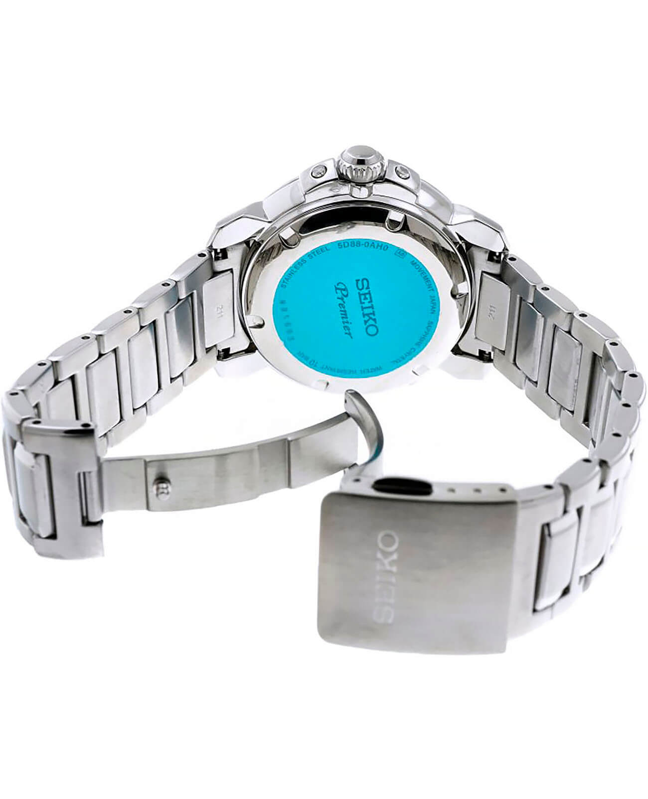 Модель оснащена японским калибром Seiko 5D88, не требующим замены батарейки (автокварц). Энергия для работы генерируется за счёт движения руки владельца. На циферблате размещён лунный календарь, окошки даты и дня недели, ретроградный указатель резерва хода. Корпус и браслет выполнены из нержавеющей стали 316L. Сапфировое стекло устойчиво к царапинам.