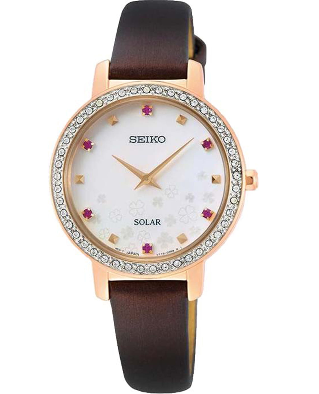 Женские японские часы с солнечной батареей Seiko Conceptual Series Dress SUP450P1, кварцевый механизм с высокой точностью. Класс водозащиты: 30 метров, позволит защитить корпус от случайных брызг или капель дождя. Корпус часов изготовлен из стали, золотистого цвета.