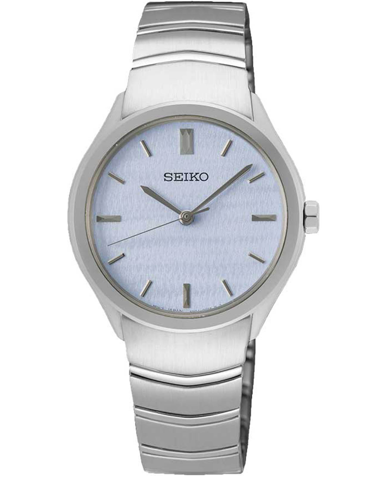 Женские японские часы Seiko Discover More SUR549P1 c кварцевымом механизм с высокой точностью с калибром 6N01. Минеральное стеклоМинеральное стеклоМинеральное стекло представляет собой искусственно выращенный минерал кварца. Такое стекло отличается особой устойчивостью к повреждениям и царапинам. Уступает по некоторым качествам сапфировому стеклу. выпуклое повышенной прочности Hardlex, устойчивое к появлению царапин, обладающее высокой прозрачностью. Водозащита до 5 ATM позволяет не снимать часы при дожде, мытье рук или случайных брызгах. Корпус и браслет часов изготовлен из нержавеющей стали. Голубой циферблат с метками в виде штрихов. Браслет с раскладной застёжкойРаскладная застёжкаТакой тип застёжки используется только на браслетах из металла. Она никогда не раскрывается полностью, происходит разделение на 2 и более частей. Раскладывающая застёжка снизит вероятность потери часов к минимуму. с фиксатором. Seiko — это гармония изящного дизайна и технологичной надёжности, компактный и стильный выбор для повседневной классики.