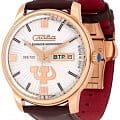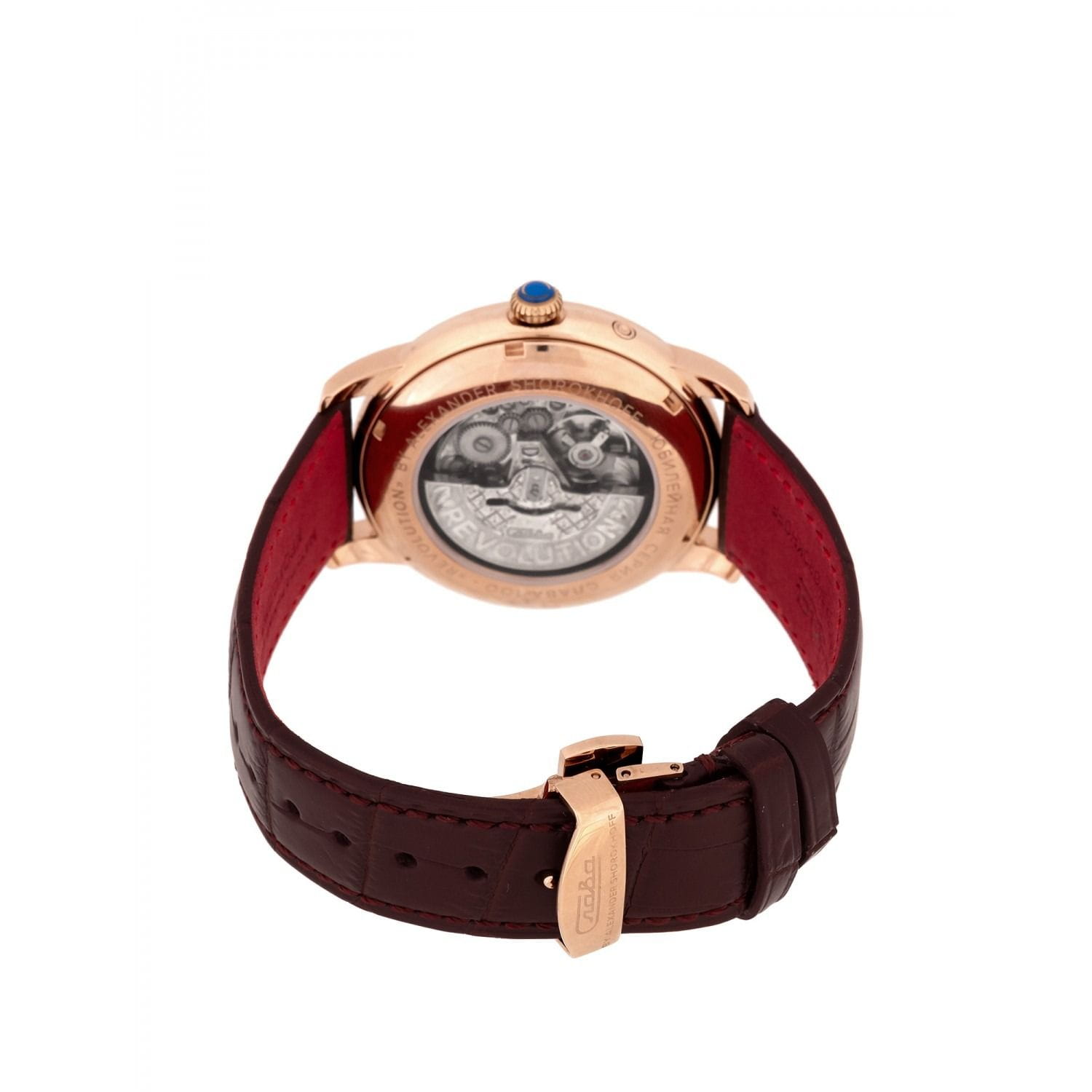 Российские механические часы с автоподзаводом Слава Революция 2603269/300-2427 созданы для тех, кто ценит стиль и надежность. Эта модель является плодом сотрудничества Часовой компании «Слава» и знаменитого мастера Александра Шорохова, который известен своим вкладом в возрождение российского часового мастерства и продвижение культуры в мире. Эти часы выполнены в соответствии с эскизами мастера, с использованием революционных символов — серпа и молота. Часы Слава «Революция» обладают механизмом с автоподзаводом «Слава 2427», украшенным ручной гравировкой, который можно наблюдать через прозрачную заднюю крышку. Этот механизм обеспечивает надежность и точность, а также добавляет элемент эксклюзивности. Корпус часов выполнен из стали c IP-покрытиемIP-покрытиеМетод ионного напыления. Демонстрирует повышенную устойчивость к истиранию, окислению и химическим веществам. Под воздействием высокого давления и температуры около 1500°C молекулы металла надёжно соединяются с частицами корпуса часов. золотистого цвета, который гармонично сочетается с белым циферблатом. Диаметр корпуса составляет 44 мм, а толщина — 14,5 мм, что делает часы выразительными и комфортными для носки. Сапфировое стеклоСапфировое стеклоПрочный и надёжный материал из кристалла сапфира синтетического происхождения, характеризующийся особой твёрдостью и устойчивостью к царапинам и повреждениям. защищает циферблат от царапин и обеспечивает долгий срок службы. Часы оснащены функцией двойного календаря, который отображает дату, что добавляет практичности в повседневной носке. Натуральный кожаный ремешок с застежкой «бабочка»Застёжка "бабочка"Такой вид застёжки дополняется предохранителями, помогающими избежать случайного раскрытия браслета. Обладают изящным исполнением. завершают образ, обеспечивая удобство и стиль. С водонепроницаемостью до 100 метров эти часы подходят для активного образа жизни, позволяя не беспокоиться о случайных контактах с водой, таких как плавание или дождь. Слава «Революция» выпускаются ограниченной серией — в трех видах по 100 штук.
