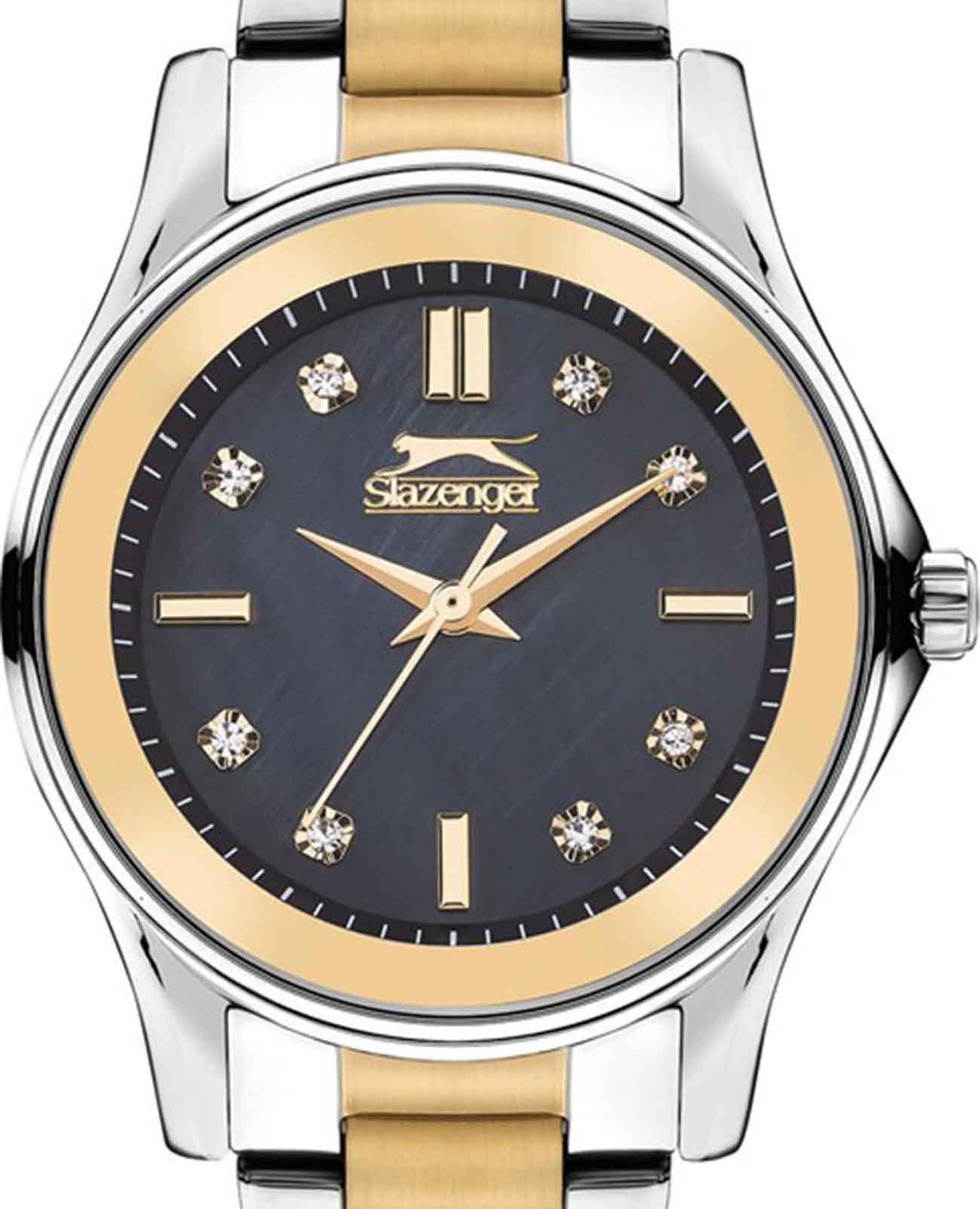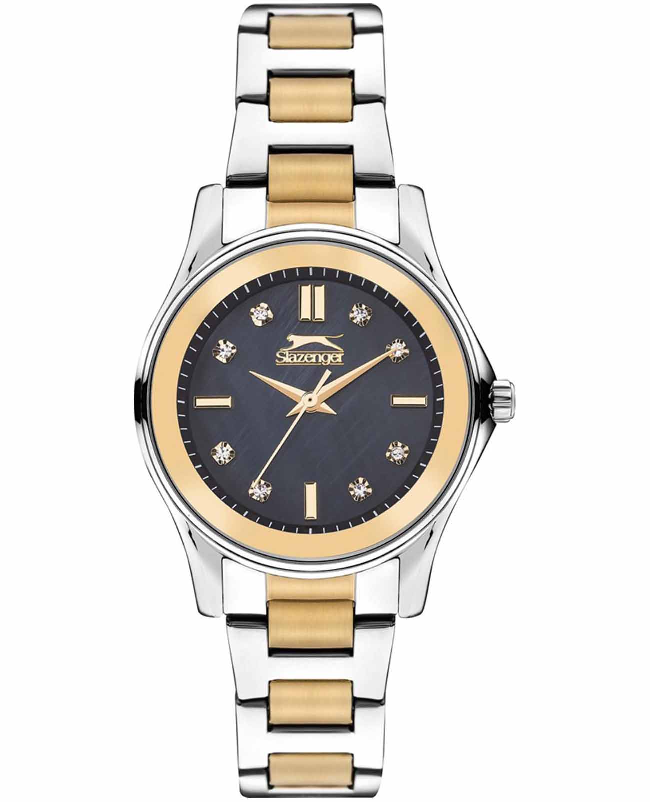 Женские наручные часы Slazenger SL.09.2235.3.09 сочетают в себе классический дизайн и надежность современных технологий. Модель обладает круглым корпусом диаметром 32 мм, изготовленным из прочного металла, что обеспечивает высокую устойчивость к внешним воздействиям. Индексы украшены фианитами. Браслет выполнен из металла с частичным золотистым IP-покрытиемIP-покрытиеМетод ионного напыления. Демонстрирует повышенную устойчивость к истиранию, окислению и химическим веществам. Под воздействием высокого давления и температуры около 1500°C молекулы металла надёжно соединяются с частицами корпуса часов. и с раскладной застёжкойРаскладная застёжкаТакой тип застёжки используется только на браслетах из металла. Она никогда не раскрывается полностью, происходит разделение на 2 и более частей. Раскладывающая застёжка снизит вероятность потери часов к минимуму., гарантирующей комфортное ношение и безопасность. Циферблат перламутрового синего цвета декорирован золотистыми стрелками и индексами. Для защиты используется минеральное стеклоМинеральное стеклоМинеральное стекло представляет собой искусственно выращенный минерал кварца. Такое стекло отличается особой устойчивостью к повреждениям и царапинам. Уступает по некоторым качествам сапфировому стеклу., обеспечивающее прочную защиту от царапин. Часы работают на кварцевом механизме, что гарантирует точное время без необходимости подзаводки. Водонепроницаемость часов достигает 3 атмосфер, что позволяет использовать их при мытье рук или хождении под мелким дождем, однако не рекомендуется для плавания или других водных видов спорта. Вес модели составляет 72 грамма.