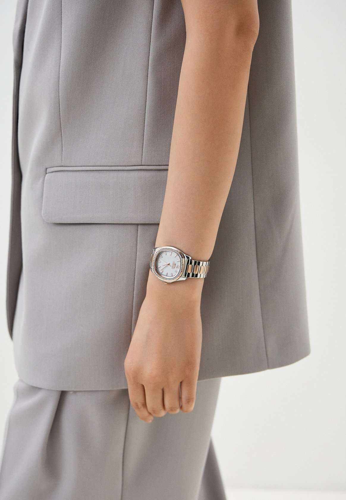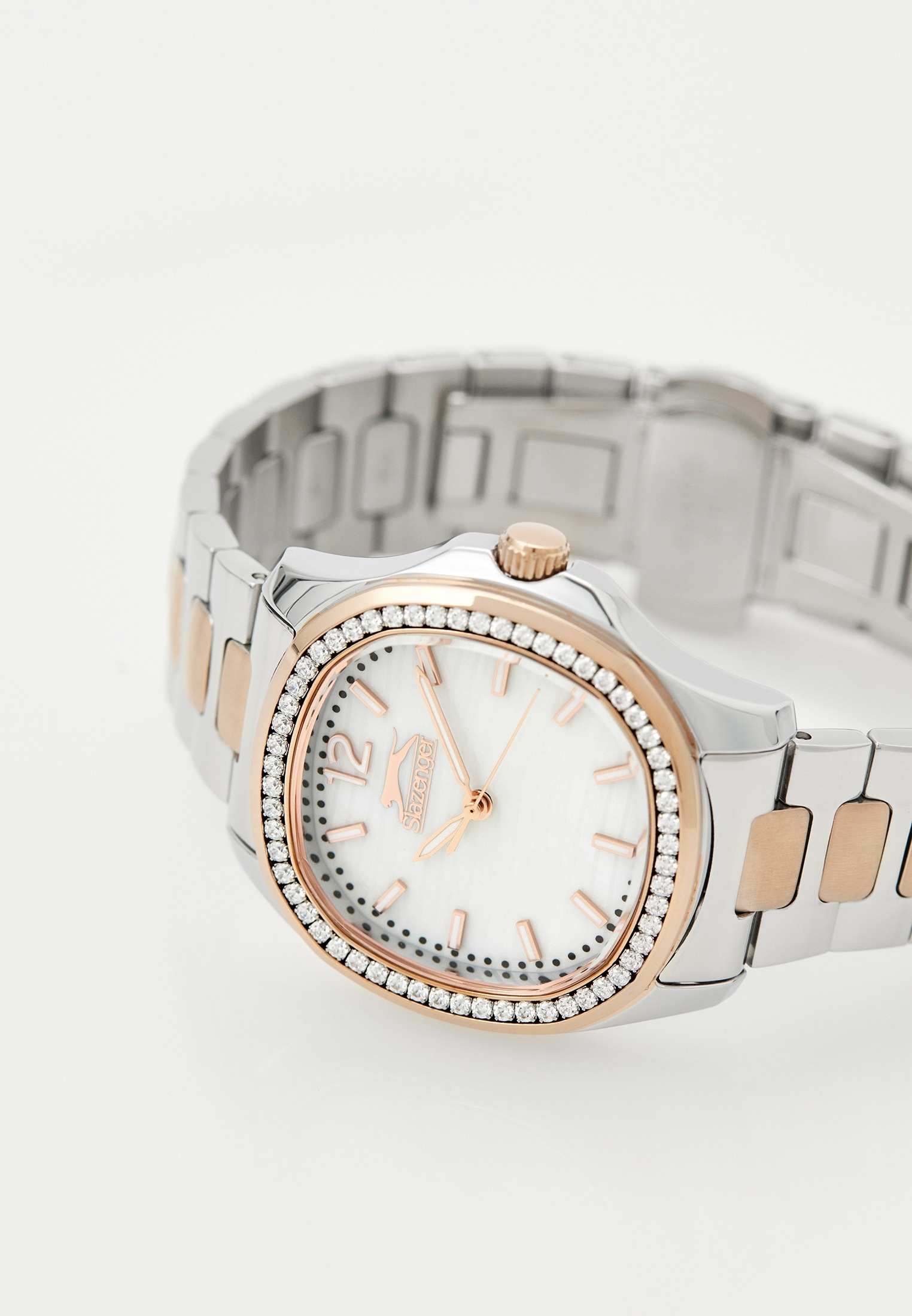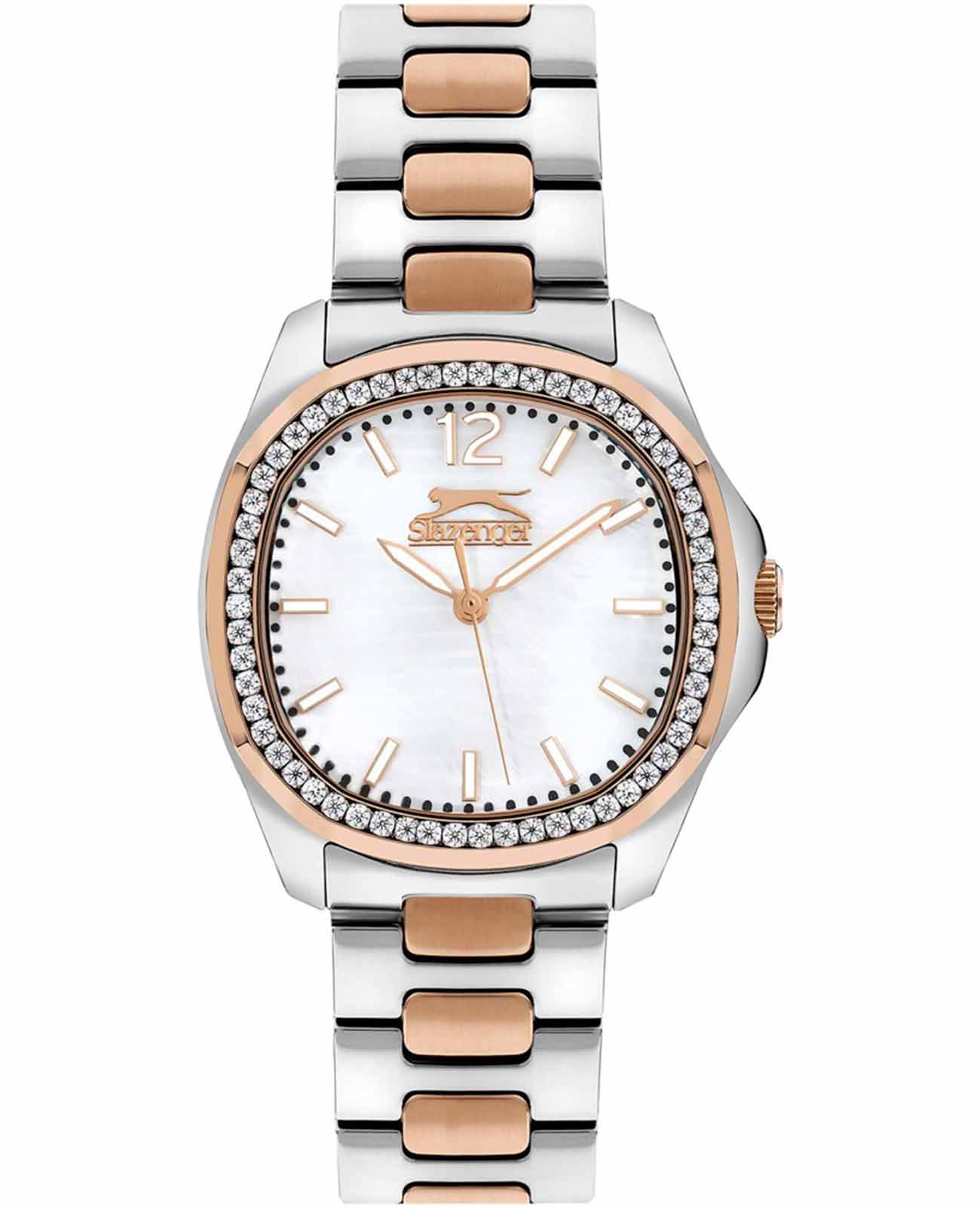 Часы Slazenger SL.09.2238.3.05 – это изысканный аксессуар, который станет стильным акцентом любого образа. Модель оснащена надежным кварцевым механизмом. Корпус из прочного металла размером 34х34 мм украшен россыпью сверкающих фианитов по безелюБезельВнешний ободок, закрепляющий стекло. В спортивных часах так называется поворотное кольцо с делениями на циферблате, выполняет роль таймера – замеряет отрезки времени на шкале. Неподвижный безель – элемент декора. Однонаправленно вращающийся безель на дайверских часах позволяет фиксировать моменты погружения и выныривания на поверхность., который к тому же с розово-золотистым IP-покрытиемIP-покрытиеМетод ионного напыления. Демонстрирует повышенную устойчивость к истиранию, окислению и химическим веществам. Под воздействием высокого давления и температуры около 1500°C молекулы металла надёжно соединяются с частицами корпуса часов., что придает часам особое сияние и элегантность. Белый перламутровый циферблат с логотипом бренда защищен стойким к царапинам минеральным стекломМинеральное стеклоМинеральное стекло представляет собой искусственно выращенный минерал кварца. Такое стекло отличается особой устойчивостью к повреждениям и царапинам. Уступает по некоторым качествам сапфировому стеклу.. Четкие часовые метки в виде лаконичных штрихов и крупная арабская цифра 12 обеспечивают удобство чтения времени. Заводная головка с рифлением дополнена защитой для повышения долговечности. Металлический браслет с частичным розово-золотистым IP-покрытиемIP-покрытиеМетод ионного напыления. Демонстрирует повышенную устойчивость к истиранию, окислению и химическим веществам. Под воздействием высокого давления и температуры около 1500°C молекулы металла надёжно соединяются с частицами корпуса часов. шириной 18 мм надежно фиксируется на запястье с помощью застежки «бабочка»Застёжка "бабочка"Такой вид застёжки дополняется предохранителями, помогающими избежать случайного раскрытия браслета. Обладают изящным исполнением. . Для удобства использования в темное время суток предусмотрено люминесцентное покрытиеЛюминесцентное покрытиеПозволяет считывать показания времени в темноте. Производители наносят на стрелки, часовые индексы, безель или поверхность циферблата светонакопительный состав, дающий холодное свечение. стрелок. Водозащита 30WR позволяет не беспокоиться о случайных брызгах. Вес изделия составляет 92 грамма, что делает часы комфортными для ежедневного ношения. Эти часы идеально подойдут для тех, кто ценит гармонию стиля, качества и функциональности.