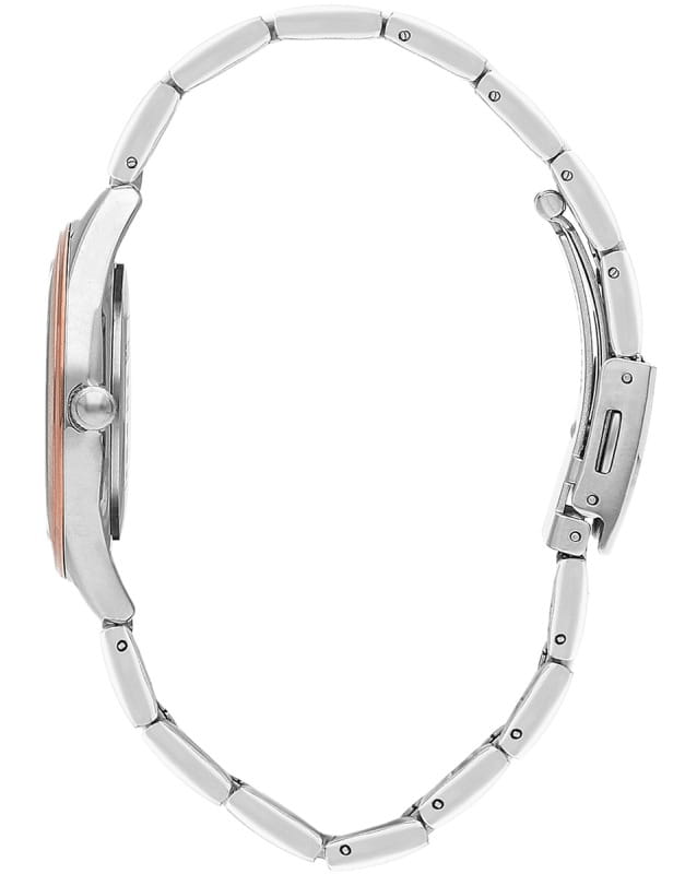 Часы Slazenger SL.09.2253.3.03 — это стильная и элегантная модель, созданная для тех, кто ценит утонченность и надежность. Корпус выполнен из прочного металла, а изящный серебристый браслет с частичным розово-золотистым IP-покрытиемIP-покрытиеМетод ионного напыления. Демонстрирует повышенную устойчивость к истиранию, окислению и химическим веществам. Под воздействием высокого давления и температуры около 1500°C молекулы металла надёжно соединяются с частицами корпуса часов. оснащён удобной раскладной застёжкойРаскладная застёжкаТакой тип застёжки используется только на браслетах из металла. Она никогда не раскрывается полностью, происходит разделение на 2 и более частей. Раскладывающая застёжка снизит вероятность потери часов к минимуму.. На безельБезельВнешний ободок, закрепляющий стекло. В спортивных часах так называется поворотное кольцо с делениями на циферблате, выполняет роль таймера – замеряет отрезки времени на шкале. Неподвижный безель – элемент декора. Однонаправленно вращающийся безель на дайверских часах позволяет фиксировать моменты погружения и выныривания на поверхность. нанесено розово-золотистое IP-покрытиеIP-покрытиеМетод ионного напыления. Демонстрирует повышенную устойчивость к истиранию, окислению и химическим веществам. Под воздействием высокого давления и температуры около 1500°C молекулы металла надёжно соединяются с частицами корпуса часов.. Минеральное стеклоМинеральное стеклоМинеральное стекло представляет собой искусственно выращенный минерал кварца. Такое стекло отличается особой устойчивостью к повреждениям и царапинам. Уступает по некоторым качествам сапфировому стеклу. защищает серебристый циферблат, украшенный сияющими кристаллами, придающими аксессуару особый шарм. Кварцевый механизм обеспечивает точность хода, а водозащита класса WR 30 позволяет не беспокоиться о случайных брызгах. Диаметр корпуса составляет 33 мм, ширина браслета — 16 мм, толщина корпуса — 8 мм, что делает эти часы аккуратными и комфортными для повседневной носки. Модель весит 70 грамм. Часы прекрасно дополнят как деловой, так и повседневный образ, подчеркивая индивидуальность своей обладательницы.