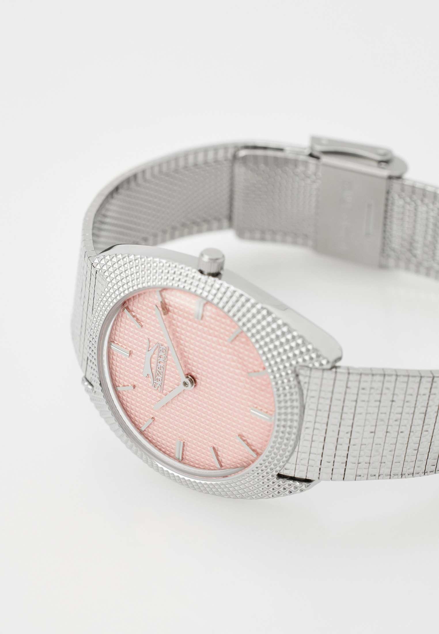 Часы Slazenger SL.09.2261.3.05 — это утонченное сочетание современного дизайна и классической элегантности. Изделие оснащено надежным кварцевым механизмом, который обеспечивает точность хода и простоту эксплуатации. Корпус из суперметалла гармонично сочетается с металлическим браслетом аналогичного оттенка и покрытия, подчеркивая изысканность аксессуара и его актуальность в модных тенденциях. Розовый циферблат украшен изысканным гильоше Clous de Paris и дополнен лаконичными метками в виде штрихов, а также фирменным логотипом бренда. Минеральное стеклоМинеральное стеклоМинеральное стекло представляет собой искусственно выращенный минерал кварца. Такое стекло отличается особой устойчивостью к повреждениям и царапинам. Уступает по некоторым качествам сапфировому стеклу. надежно защищает циферблат от случайных царапин. Диаметр корпуса составляет 34 мм, толщина — 8 мм, ширина браслета — 18 мм, а вес часов — всего 54 г, благодаря чему аксессуар удобно сидит на запястье. Стальной браслет c раскладным замкомРаскладной замокДанный вариант застежки используется только на часах с металлическим браслетом. Отличительная особенность такого крепления в том, что длина браслета становится универсальной и вы можете самостоятельно отрегулировать нужный вам размер – застежка просто двигается по браслету часов. удобно фиксируется на запястье и подчёркивает современный характер часов. Водозащита 30WR позволяет не беспокоиться о случайных брызгах. Модель отличается отсутствием секундной стрелки и оснащена рифленой заводной головкой для легкой корректировки времени. Эти часы станут стильным завершением любого образа, подчеркивая индивидуальность и чувство вкуса обладателя.