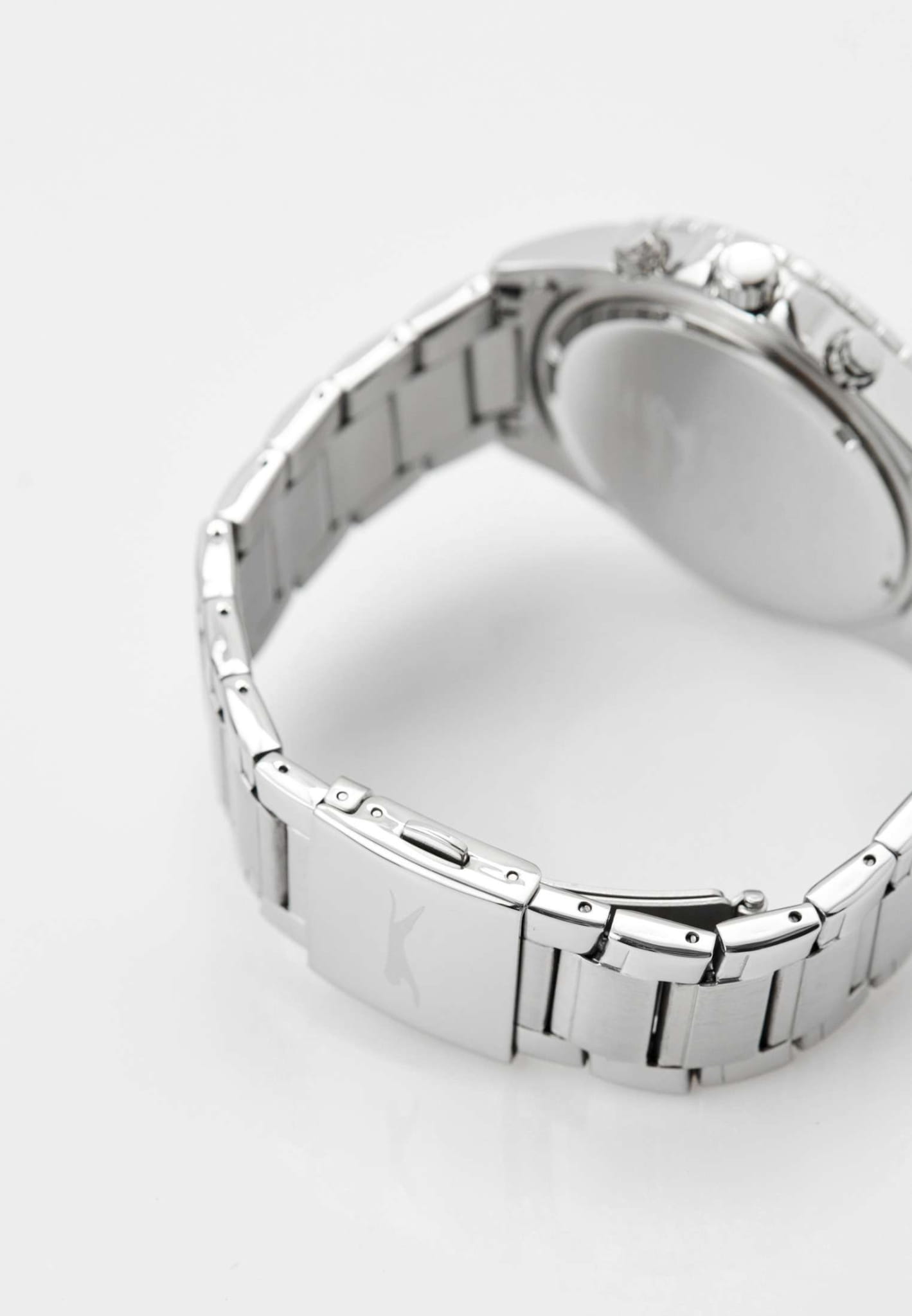 Часы Slazenger SL.09.2273.2.04 – стильный и функциональный аксессуар, который станет достойным дополнением к вашему образу. Модель оснащена надежным кварцевым механизмом, заключенным в корпус из инновационного суперметалла – прочного сплава на основе меди с пониженным содержанием цинка и никеля и специальным покрытием, устойчивым к износу. На безельБезельВнешний ободок, закрепляющий стекло. В спортивных часах так называется поворотное кольцо с делениями на циферблате, выполняет роль таймера – замеряет отрезки времени на шкале. Неподвижный безель – элемент декора. Однонаправленно вращающийся безель на дайверских часах позволяет фиксировать моменты погружения и выныривания на поверхность. нанесено черное IP-покрытиеIP-покрытиеМетод ионного напыления. Демонстрирует повышенную устойчивость к истиранию, окислению и химическим веществам. Под воздействием высокого давления и температуры около 1500°C молекулы металла надёжно соединяются с частицами корпуса часов., что придает аксессуару утончённый и универсальный внешний вид. Желтый циферблат под минеральным стекломМинеральное стеклоМинеральное стекло представляет собой искусственно выращенный минерал кварца. Такое стекло отличается особой устойчивостью к повреждениям и царапинам. Уступает по некоторым качествам сапфировому стеклу. дополнен отдельными счетчиками: 24-часовой указатель времени, индикаторы даты и дня недели. Диаметр корпуса составляет 44 мм, а толщина – 12 мм, что обеспечивает комфортную посадку на запястье и подчёркивает современный стиль часов. Браслет из суперметалла и с раскладной застёжкойРаскладная застёжкаТакой тип застёжки используется только на браслетах из металла. Она никогда не раскрывается полностью, происходит разделение на 2 и более частей. Раскладывающая застёжка снизит вероятность потери часов к минимуму. обеспечивает комфортную посадку. Стрелки и метки с люминесцентным покрытиемЛюминесцентное покрытиеПозволяет считывать показания времени в темноте. Производители наносят на стрелки, часовые индексы, безель или поверхность циферблата светонакопительный состав, дающий холодное свечение. удобно подсвечиваются в темноте после зарядки на свету. Водонепроницаемость 5 АТМ защищает механизм от брызг и дождя, позволяя не беспокоиться о сохранности аксессуара в повседневной жизни. Эта модель станет отличным выбором для ежедневного ношения или особых случаев и прекрасным подарком для мужчины к любому празднику.