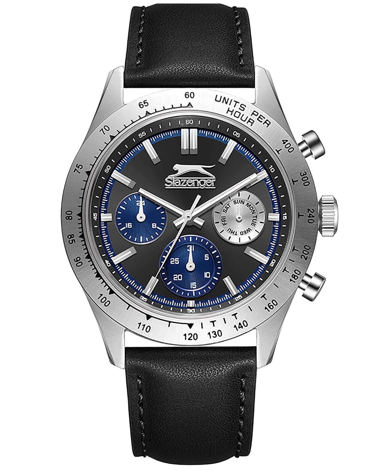 Мужские кварцевые часы Slazenger SL.09.2359.2.01 – идеальное сочетание классического дизайна и современных технологий, созданное для уверенных в себе мужчин. Корпус выполнен из суперметалла серебристого цвета, диаметром 43 мм и толщиной 11 мм, подчёркивает надежность модели и делает их идеальным аксессуаром для любой ситуации – будь то деловая встреча или повседневные выходы. Циферблат надёжно защищён минеральным стекломМинеральное стеклоМинеральное стекло представляет собой искусственно выращенный минерал кварца. Такое стекло отличается особой устойчивостью к повреждениям и царапинам. Уступает по некоторым качествам сапфировому стеклу., которое устойчиво к механическим повреждениям и сохраняет кристальную прозрачность. Кожаный ремешок на стандартной застёжке удобно облегает запястье, обеспечивая надёжность и комфорт в повседневном ношении. Стрелки покрыты люминесцентным покрытиемЛюминесцентное покрытиеПозволяет считывать показания времени в темноте. Производители наносят на стрелки, часовые индексы, безель или поверхность циферблата светонакопительный состав, дающий холодное свечение., обеспечивающим отличную читаемость в темноте. Эти часы станут не просто аксессуаром, а надежным спутником в любой ситуации, подчеркивая ваш безупречный вкус и деловой стиль. Вынесенный циферблат с 24-х часовым указателем времени и функция тахиметраТахиметрРазмеченная шкала, располагается на ободке или безеле часов. Тахиметр позволяет рассчитать скорость на определённом участке пути, расстояние измеряется в километрах или милях.. Водозащита 50 метров позволит защитить корпус от случайных брызг или капель дождя.