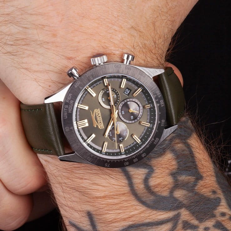 Мужские кварцевые часы Slazenger SL.09.2359.2.02 – идеальное сочетание классического дизайна и современных технологий, созданное для уверенных в себе мужчин. Корпус выполнен из суперметалла серебристого цвета, диаметром 43 мм и толщиной 11 мм, подчёркивает надежность модели и делает их идеальным аксессуаром для любой ситуации – будь то деловая встреча или повседневные выходы. Циферблат надёжно защищён минеральным стекломМинеральное стеклоМинеральное стекло представляет собой искусственно выращенный минерал кварца. Такое стекло отличается особой устойчивостью к повреждениям и царапинам. Уступает по некоторым качествам сапфировому стеклу., которое устойчиво к механическим повреждениям и сохраняет кристальную прозрачность. Неподвижный безельБезельВнешний ободок, закрепляющий стекло. В спортивных часах так называется поворотное кольцо с делениями на циферблате, выполняет роль таймера – замеряет отрезки времени на шкале. Неподвижный безель – элемент декора. Однонаправленно вращающийся безель на дайверских часах позволяет фиксировать моменты погружения и выныривания на поверхность. с IP-покрытиемIP-покрытиеМетод ионного напыления. Демонстрирует повышенную устойчивость к истиранию, окислению и химическим веществам. Под воздействием высокого давления и температуры около 1500°C молекулы металла надёжно соединяются с частицами корпуса часов.. Кожаный ремешок на стандартной застёжке удобно облегает запястье, обеспечивая надёжность и комфорт в повседневном ношении. Стрелки покрыты люминесцентным покрытиемЛюминесцентное покрытиеПозволяет считывать показания времени в темноте. Производители наносят на стрелки, часовые индексы, безель или поверхность циферблата светонакопительный состав, дающий холодное свечение., обеспечивающим отличную читаемость в темноте. Эти часы станут не просто аксессуаром, а надежным спутником в любой ситуации, подчеркивая ваш безупречный вкус и деловой стиль. Вынесенный циферблат с 24-х часовым указателем времени и функция тахиметраТахиметрРазмеченная шкала, располагается на ободке или безеле часов. Тахиметр позволяет рассчитать скорость на определённом участке пути, расстояние измеряется в километрах или милях.. Водозащита 50 метров позволит защитить корпус от случайных брызг или капель дождя.