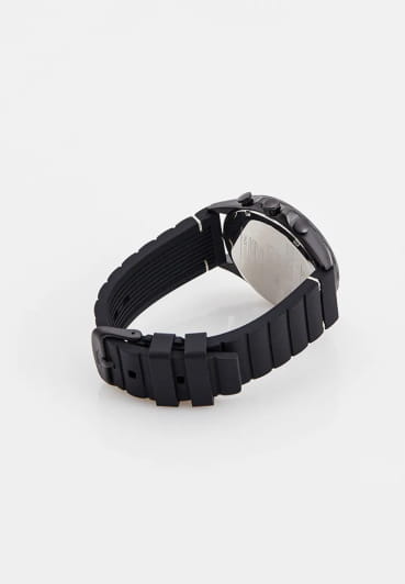 Мужские кварцевые часы Slazenger — это выразительный и функциональный аксессуар. Корпус диаметром 46 мм и толщиной 11 мм выполнен из суперметалла с IP-покрытиемIP-покрытиеМетод ионного напыления. Демонстрирует повышенную устойчивость к истиранию, окислению и химическим веществам. Под воздействием высокого давления и температуры около 1500°C молекулы металла надёжно соединяются с частицами корпуса часов.. Циферблат чёрного цвета оформлен индексами, стрелками и двумя вынесенными субциферблатами: для отображения дня недели и 24-часового формата времени. Окошко даты расположено между 4 и 5 часами. Присутствует указатель второго часового пояса (GMTВторой часовой поясФункция, позволяющая отображать время двух часовых поясов одновременно.). Циферблат защищён минеральным стекломМинеральное стеклоМинеральное стекло представляет собой искусственно выращенный минерал кварца. Такое стекло отличается особой устойчивостью к повреждениям и царапинам. Уступает по некоторым качествам сапфировому стеклу.. Часы оснащены силиконовым ремешком на классической пряжке. Водонепроницаемость 50 м позволяет использовать часы в повседневных условиях. Идеальный выбор для тех, кто ценит стиль и качество.