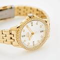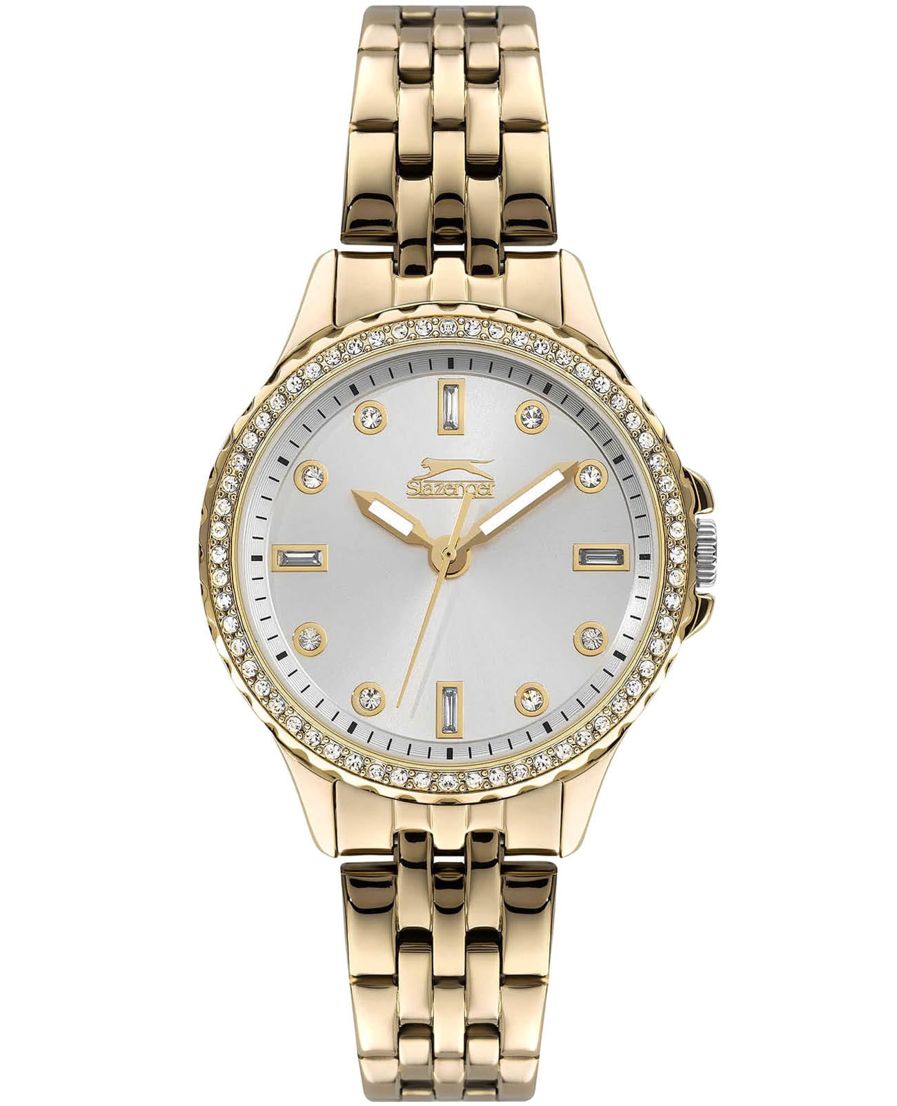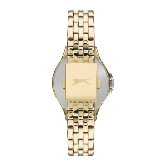 Женские кварцевые часы Slazenger SL.09.6536.3.02 – это сочетание элегантности, современного стиля и надёжности. Изящный корпус из суперметалла с IP-покрытиемIP-покрытиеМетод ионного напыления. Демонстрирует повышенную устойчивость к истиранию, окислению и химическим веществам. Под воздействием высокого давления и температуры около 1500°C молекулы металла надёжно соединяются с частицами корпуса часов. золотистого цвета, диаметром 35 мм и толщиной 8.5 мм, подчёркивает утончённость модели и делает их идеальным аксессуаром для любой ситуации – будь то деловая встреча, романтический вечер или повседневные выходы. Циферблат надёжно защищён минеральным стекломМинеральное стеклоМинеральное стекло представляет собой искусственно выращенный минерал кварца. Такое стекло отличается особой устойчивостью к повреждениям и царапинам. Уступает по некоторым качествам сапфировому стеклу., которое устойчиво к механическим повреждениям и сохраняет кристальную прозрачность. БезельБезельВнешний ободок, закрепляющий стекло. В спортивных часах так называется поворотное кольцо с делениями на циферблате, выполняет роль таймера – замеряет отрезки времени на шкале. Неподвижный безель – элемент декора. Однонаправленно вращающийся безель на дайверских часах позволяет фиксировать моменты погружения и выныривания на поверхность. украшен фианитами. Браслет из суперметалла с IP-покрытиемIP-покрытиеМетод ионного напыления. Демонстрирует повышенную устойчивость к истиранию, окислению и химическим веществам. Под воздействием высокого давления и температуры около 1500°C молекулы металла надёжно соединяются с частицами корпуса часов. удобно облегает запястье и фиксируется с помощью раскладной застёжкиРаскладная застёжкаТакой тип застёжки используется только на браслетах из металла. Она никогда не раскрывается полностью, происходит разделение на 2 и более частей. Раскладывающая застёжка снизит вероятность потери часов к минимуму., обеспечивая надёжность и комфорт в повседневном ношении. Стрелки покрыты люминесцентным покрытиемЛюминесцентное покрытиеПозволяет считывать показания времени в темноте. Производители наносят на стрелки, часовые индексы, безель или поверхность циферблата светонакопительный состав, дающий холодное свечение., обеспечивающим отличную читаемость в темноте. Утончённый стиль, внимание к деталям и практичность делают эту модель идеальным выбором для современных женщин, ценящих эстетику и функциональность. Водозащита до 30 метров позволит защитить корпус от случайных брызг или капель дождя.