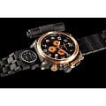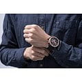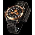 Внутри установлен швейцарский кварцевый механизм Ronda 5130.D, обеспечивающий высокую точность хода. Функции хронографаХронографФункция позволяет измерять отрезки времени с особой точностью: часы, минуты, секунды. Верным признаком хронографа является наличие на циферблате 3 дополнительных окошек-счётчиков. включают секундомер до 12 часов, отображение даты, 24-часовой формат времени и второй часовой пояс, расположенный на браслете.
