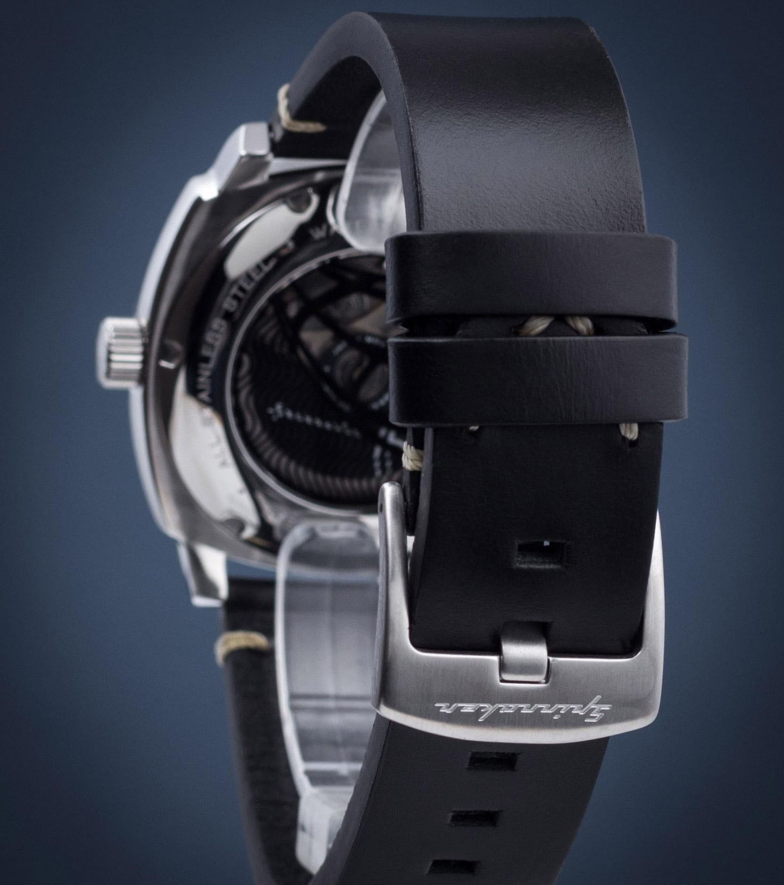 Мужские итальянские часы Spinnaker Hull California SP-5071-02, механический механизм (автоматический калибр) с высокой точностью. Циферблат с люминесцентным покрытиемЛюминесцентное покрытиеПозволяет считывать показания времени в темноте. Производители наносят на стрелки, часовые индексы, безель или поверхность циферблата светонакопительный состав, дающий холодное свечение. стрелок и меток дополнен закаленном минеральным стекломМинеральное стеклоМинеральное стекло представляет собой искусственно выращенный минерал кварца. Такое стекло отличается особой устойчивостью к повреждениям и царапинам. Уступает по некоторым качествам сапфировому стеклу. с антибликовым покрытием, устойчивым к мелким механическим повреждениям. Класс водозащиты: 100 метров, позволит плавать, нырять и заниматься другими водными видами спорта. Корпус часов изготовлен из стали. Черный кожаный ремешок шириной 22 мм, стандартная застежка.