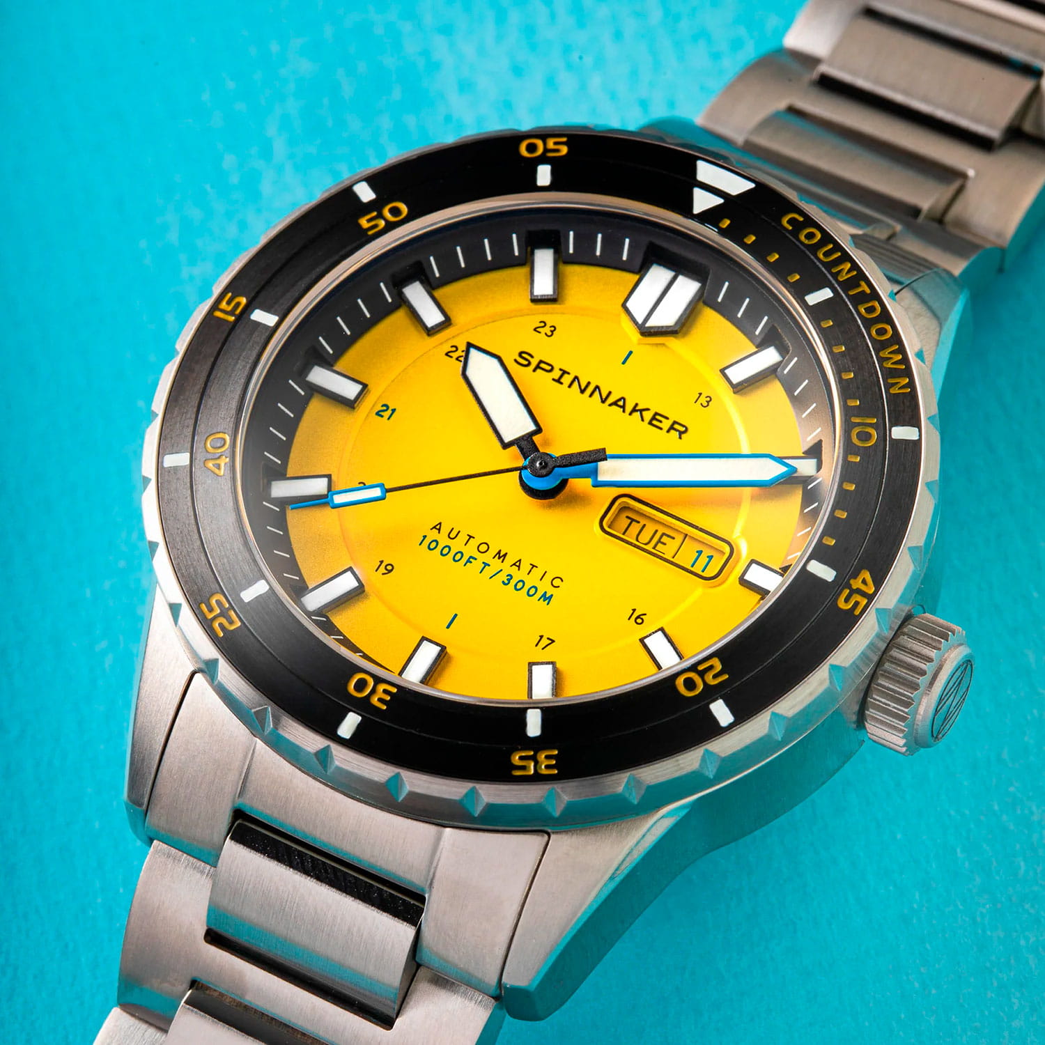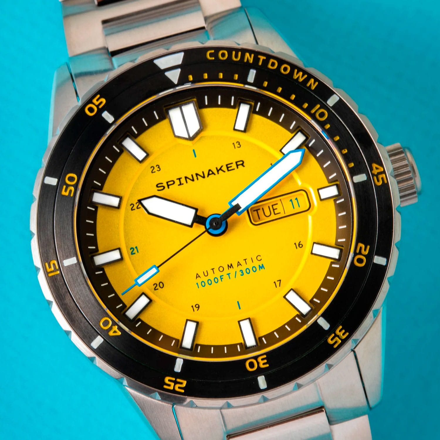 Мужские итальянские часы Spinnaker Hass SP-5099-33 с надёжным автоматическим механизмом. Сапфировое стеклоСапфировое стеклоПрочный и надёжный материал из кристалла сапфира синтетического происхождения, характеризующийся особой твёрдостью и устойчивостью к царапинам и повреждениям. с антибликовым покрытиемАнтибликовое покрытиеСлой оксида металла в 0,13-0,3 микрон, благодаря которому стекло часов не бликует и не отражает свет. Антибликовое покрытие уменьшает отражение света в 10 раз, обеспечивая отличную читаемость показателей циферблата., устойчивое к появлению царапин и обладающее высокой прозрачностью. Класс водозащиты: 300 метров, позволит плавать, нырять и заниматься другими водными видами спорта. Корпус часов изготовлен из нержавеющей стали с поворотным безелемБезельВнешний ободок, закрепляющий стекло. В спортивных часах так называется поворотное кольцо с делениями на циферблате, выполняет роль таймера – замеряет отрезки времени на шкале. Неподвижный безель – элемент декора. Однонаправленно вращающийся безель на дайверских часах позволяет фиксировать моменты погружения и выныривания на поверхность. с IP-покрытиемIP-покрытиеМетод ионного напыления. Демонстрирует повышенную устойчивость к истиранию, окислению и химическим веществам. Под воздействием высокого давления и температуры около 1500°C молекулы металла надёжно соединяются с частицами корпуса часов.. Браслет выполнен из нержавеющей стали на раскладной застёжкеРаскладная застёжкаТакой тип застёжки используется только на браслетах из металла. Она никогда не раскрывается полностью, происходит разделение на 2 и более частей. Раскладывающая застёжка снизит вероятность потери часов к минимуму.. Стрелки и метки с люминесцентным покрытиемЛюминесцентное покрытиеПозволяет считывать показания времени в темноте. Производители наносят на стрелки, часовые индексы, безель или поверхность циферблата светонакопительный состав, дающий холодное свечение.. Окошко дня недели и даты находится в положении 3 часа.