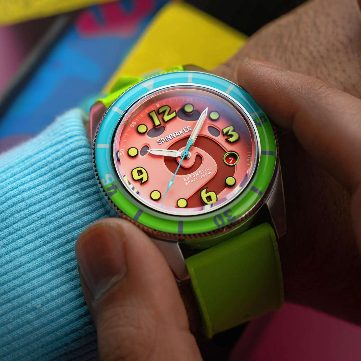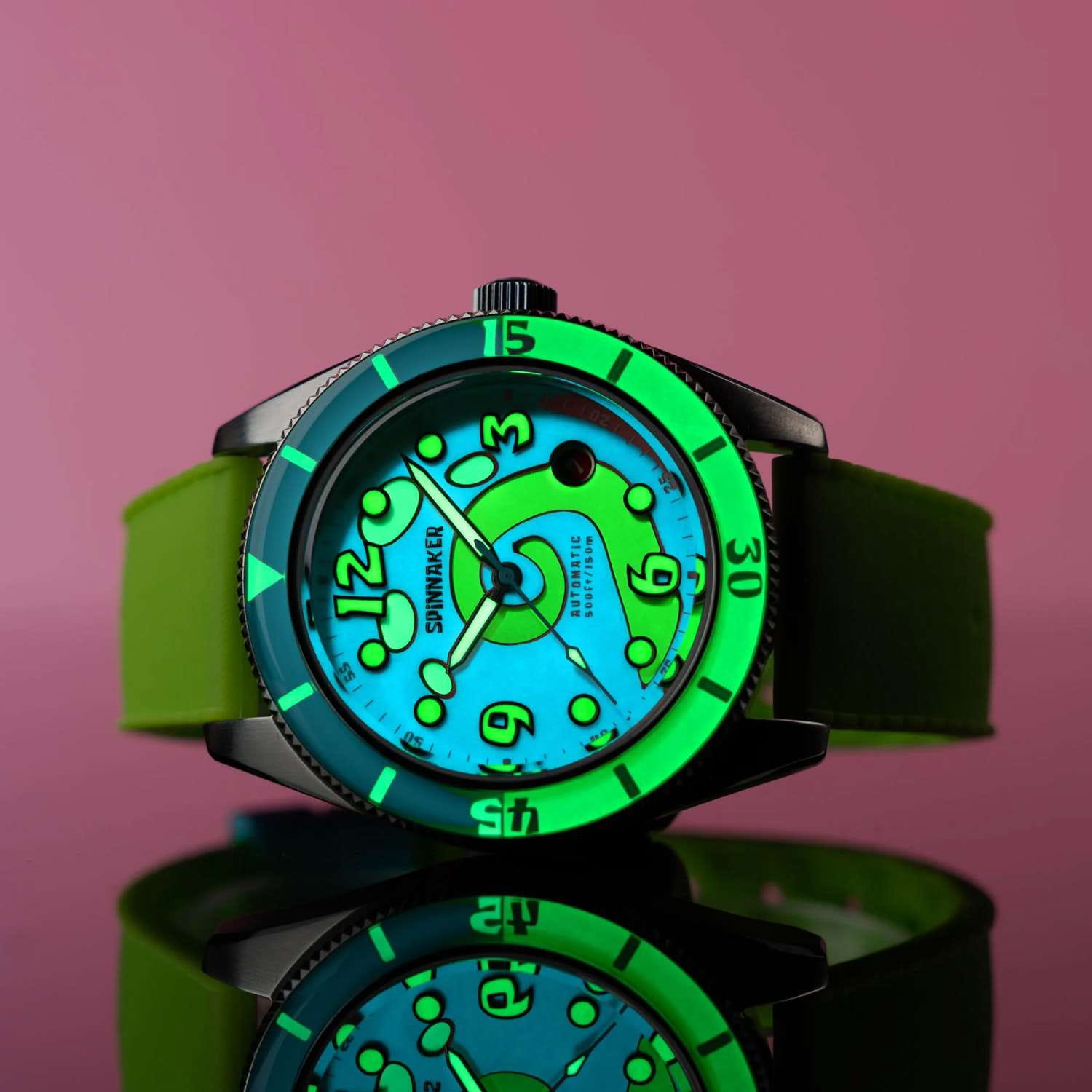 Мужские механические часы с автоподзаводом Spinnaker — это лимитированный и стильный аксессуар. Корпус диаметром 43 мм выполнен из нержавеющей стали. БезельБезельВнешний ободок, закрепляющий стекло. В спортивных часах так называется поворотное кольцо с делениями на циферблате, выполняет роль таймера – замеряет отрезки времени на шкале. Неподвижный безель – элемент декора. Однонаправленно вращающийся безель на дайверских часах позволяет фиксировать моменты погружения и выныривания на поверхность. с IP-покрытиемIP-покрытиеМетод ионного напыления. Демонстрирует повышенную устойчивость к истиранию, окислению и химическим веществам. Под воздействием высокого давления и температуры около 1500°C молекулы металла надёжно соединяются с частицами корпуса часов.. Циферблат оформлен цифрами, точками и стрелками. Стрелки и метки с люминесцентным покрытиемЛюминесцентное покрытиеПозволяет считывать показания времени в темноте. Производители наносят на стрелки, часовые индексы, безель или поверхность циферблата светонакопительный состав, дающий холодное свечение., обеспечивающим хорошую читаемость в темноте. Циферблат защищён сапфировым стекломСапфировое стеклоПрочный и надёжный материал из кристалла сапфира синтетического происхождения, характеризующийся особой твёрдостью и устойчивостью к царапинам и повреждениям. с антибликовым покрытиемАнтибликовое покрытиеСлой оксида металла в 0,13-0,3 микрон, благодаря которому стекло часов не бликует и не отражает свет. Антибликовое покрытие уменьшает отражение света в 10 раз, обеспечивая отличную читаемость показателей циферблата.. Механизм — автоматический калибр Seiko NH35 (24 камня, частота 21 600 полуколебаний в час) с запасом до 41 часа. Прозрачная задняя крышка позволяет наблюдать за работой механизма. Часы оснащены зелёным силиконовым ремешком шириной 22 мм на стандартной пряжке. Водонепроницаемость 150 м позволяет использовать часы для плавания и дайвинга. Идеальный выбор для тех, кто ценит качество и нестандартный дизайн.