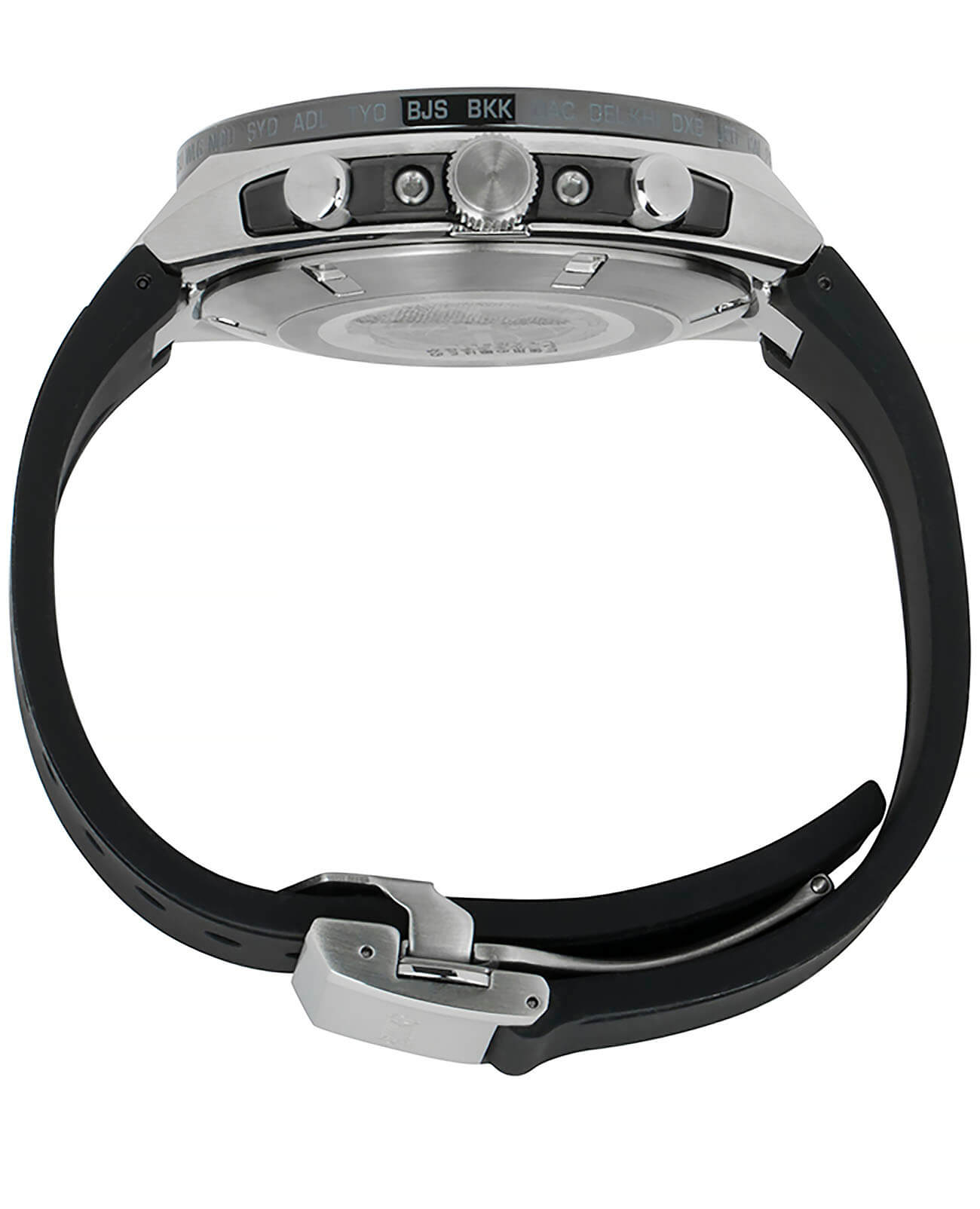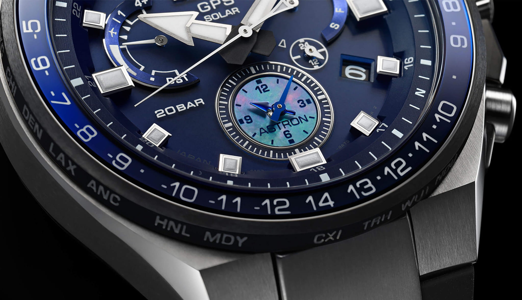 Дизайн подразумевает особое внимание к каждой детали, сдержанные оттенки позволяют носить часы с любой одеждой. Модель GPS Solar Dual-Time в синем исполнении обладает преимуществом в виде полезного функционала. Встроенный приёмник GPS-сигнала определяет часовой пояс, дату и точное время, происходит распознавание 40 часовых поясов. Кварцевый японский механизм Seiko 8X53. Точность хода +/- 15 секунд в месяц. Питание за счёт солнечной батареи - . Сапфировое стекло. Стрелки и метки с покрытием LumiBriteЛюминесцентное покрытиеПозволяет считывать показания времени в темноте. Производители наносят на стрелки, часовые индексы, безель или поверхность циферблата светонакопительный состав, дающий холодное свечение.. Корпус из титана с антимагнитными свойствами. Вращающийся керамический безельБезельВнешний ободок, закрепляющий стекло. В спортивных часах так называется поворотное кольцо с делениями на циферблате, выполняет роль таймера – замеряет отрезки времени на шкале. Неподвижный безель – элемент декора. Однонаправленно вращающийся безель на дайверских часах позволяет фиксировать моменты погружения и выныривания на поверхность.. Водостойкость 200 метров. Тройная застёжка с фиксатором. Календарь. Диаметр корпуса: 46,7 мм.