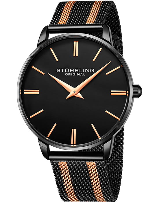 Stuhrling 3998.6 — элегантные мужские часы, объединяющие строгую классику и современную функциональность. Корпус из нержавеющей стали с PVD-покрытиемPVDУльтратонкое покрытие наносится в технике вакуумного напыления, сочетает в себе нитрид титана особой прочности со слоем золота или оксида хрома. Несёт в себе декоративную или защитную функцию. создают ощущение монолитной надёжности, а глубокий циферблат придаёт модели выразительность и характер. Стальной браслет миланского плетения с PVD-покрытиемPVDУльтратонкое покрытие наносится в технике вакуумного напыления, сочетает в себе нитрид титана особой прочности со слоем золота или оксида хрома. Несёт в себе декоративную или защитную функцию. на раскладном замкеРаскладной замокДанный вариант застежки используется только на часах с металлическим браслетом. Отличительная особенность такого крепления в том, что длина браслета становится универсальной и вы можете самостоятельно отрегулировать нужный вам размер – застежка просто двигается по браслету часов.. Прочное стекло KrysternaKrysternaKrysterna — инновационное стекло для наручных часов. Благодаря уникальной структуре, Krysterna объединяет ключевые преимущества двух материалов: твердость сапфира, защищающую от царапин, и гибкость минерального стекла, обеспечивающую устойчивость к деформациям. Такая комбинация делает его идеальным решением для часов, подверженных экстремальным нагрузкам, сохраняя при этом оптическую прозрачность. защищает циферблат от царапин, а надёжный кварцевый механизм гарантирует стабильную точность. Stuhrling — выбор уверенного мужчины, ценящего сочетание функциональности, лаконичного дизайна и безупречной отделки.