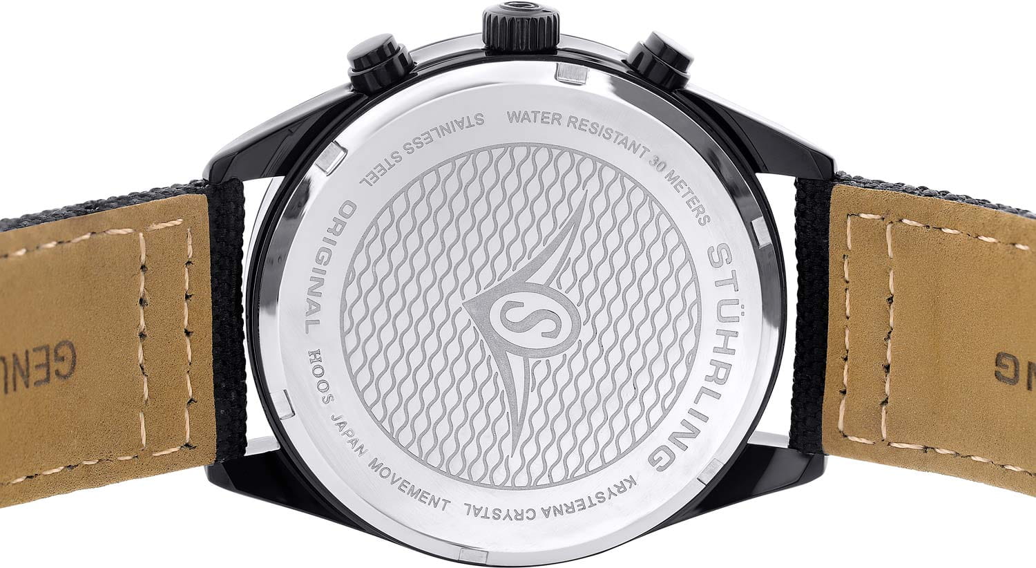 Stuhrling 4001.6 — стильные мужские часы в авиационном духе, где функциональность сочетается с современным дизайном. Корпус из нержавеющей стали с PVD-покрытиемPVDУльтратонкое покрытие наносится в технике вакуумного напыления, сочетает в себе нитрид титана особой прочности со слоем золота или оксида хрома. Несёт в себе декоративную или защитную функцию. подчёркивает прочность и надёжность модели, а глубокий циферблат с крупными арабскими цифрами и тремя счётчиками хронографаХронографФункция позволяет измерять отрезки времени с особой точностью: часы, минуты, секунды. Верным признаком хронографа является наличие на циферблате 3 дополнительных окошек-счётчиков. придаёт динамичный характер. Контрастные стрелки и метки с люминесцентным покрытиемЛюминесцентное покрытиеПозволяет считывать показания времени в темноте. Производители наносят на стрелки, часовые индексы, безель или поверхность циферблата светонакопительный состав, дающий холодное свечение. обеспечивают превосходную читаемость даже в темноте. Прочное стекло KrysternaKrysternaKrysterna — инновационное стекло для наручных часов. Благодаря уникальной структуре, Krysterna объединяет ключевые преимущества двух материалов: твердость сапфира, защищающую от царапин, и гибкость минерального стекла, обеспечивающую устойчивость к деформациям. Такая комбинация делает его идеальным решением для часов, подверженных экстремальным нагрузкам, сохраняя при этом оптическую прозрачность. устойчиво к царапинам и сохраняет идеальную прозрачность. Завершает образ тканевый ремень, добавляющий часам лёгкости и спортивного обаяния. Stuhrling — воплощение мужского стиля и уверенности в каждой детали.