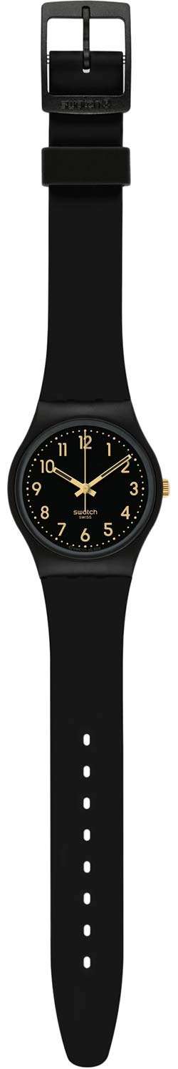 Часы Swatch Gent Standard GB274 — это стильный и современный аксессуар для тех, кто ценит лёгкость и комфорт. Часы идеально подойдут как для мужчин, так и для женщин. Модель Gent Standard GB274 сочетает в себе кварцевый механизм, элегантное черное и золотое оформление, а также матовый ремешок из силикона, что делает их идеальными для любого образа. На часовую, минутную стрелки нанесено люминесцентное покрытиеЛюминесцентное покрытиеПозволяет считывать показания времени в темноте. Производители наносят на стрелки, часовые индексы, безель или поверхность циферблата светонакопительный состав, дающий холодное свечение., которое светится в темноте, создавая необычное изображение. Водозащита 30 метров делает часы практичными для повседневного использования. Эти часы подойдут для повседневного ношения и станут ярким акцентом в вашем наряде.